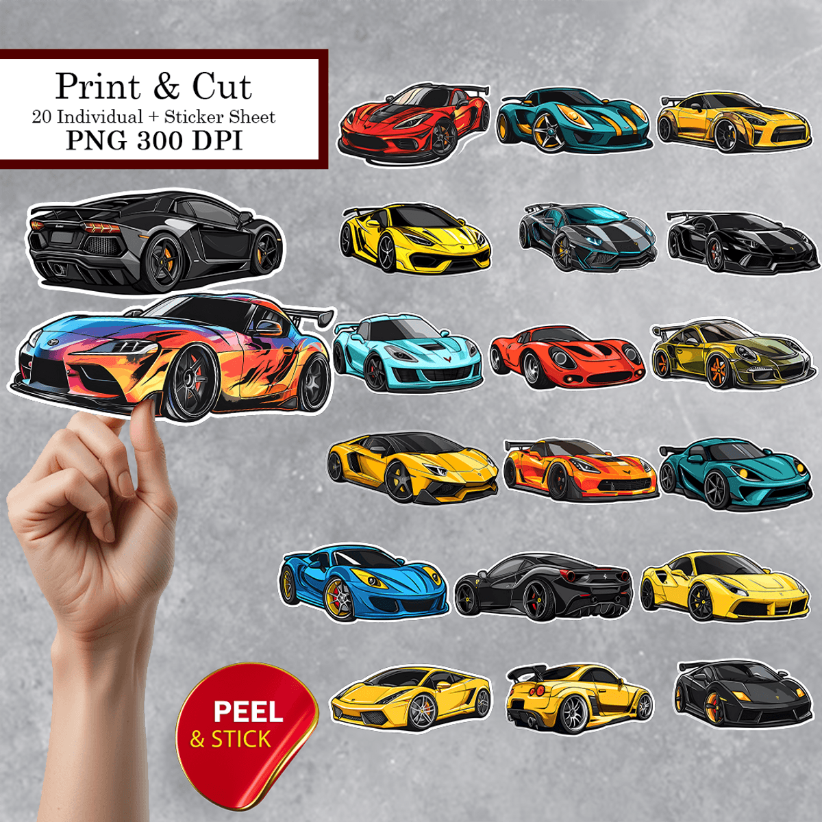 Sports Car Sticker - Printable PNG files. 20pcs