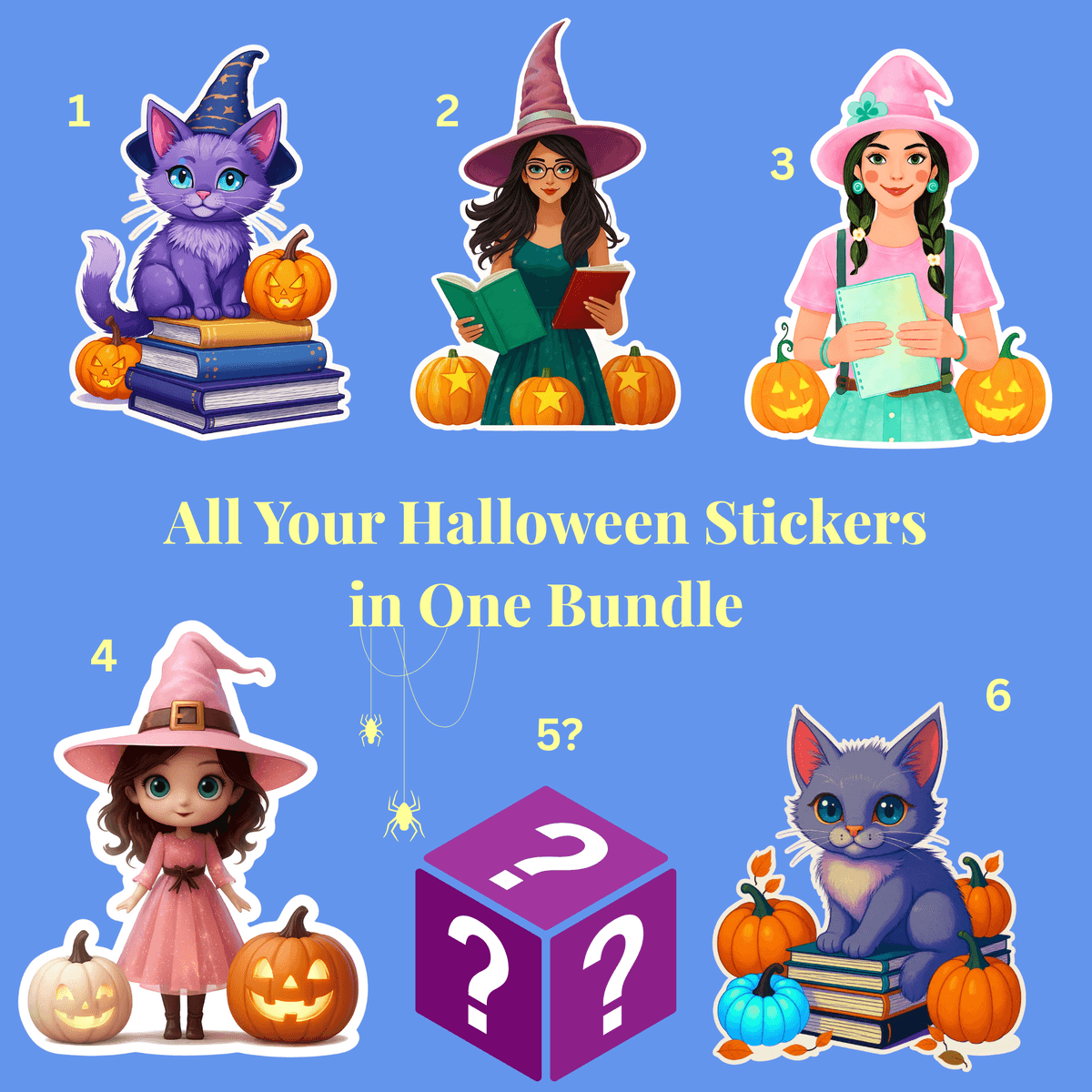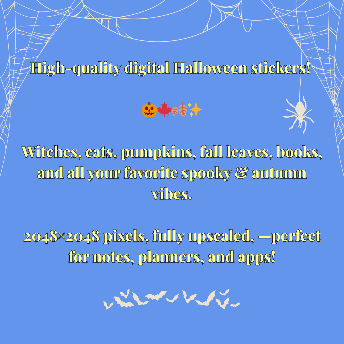 Halloween Sticker Bundle; Witches, Cats, Pumpkins & Fall Digital Stickers