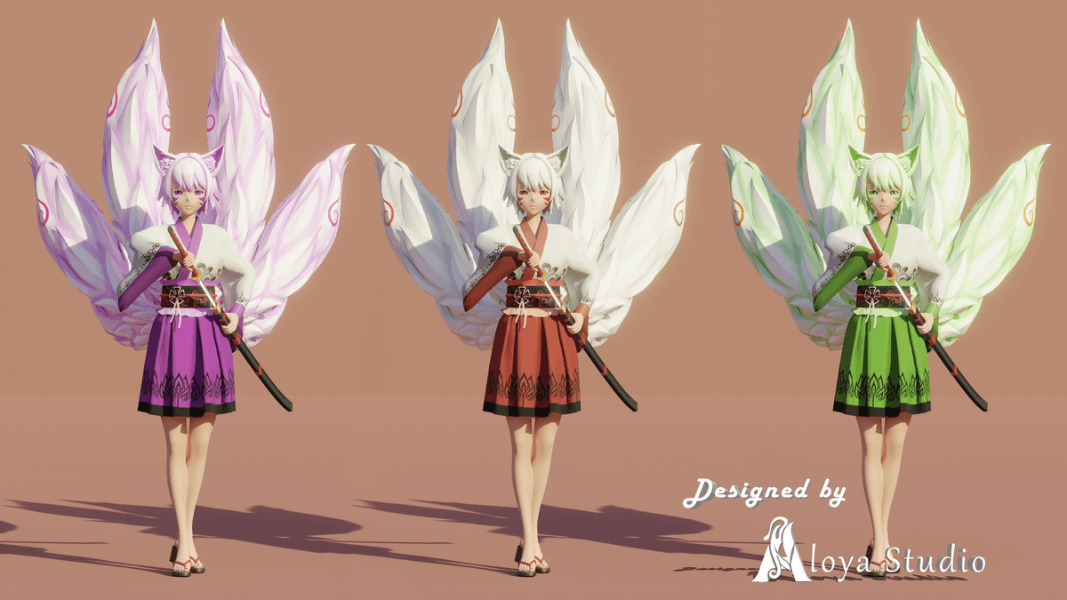 Anime Girl Character - Kitsune Fox Girl for Unity Game 3D