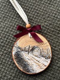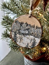 Custom Winter Wilderness Wood Slice Ornament