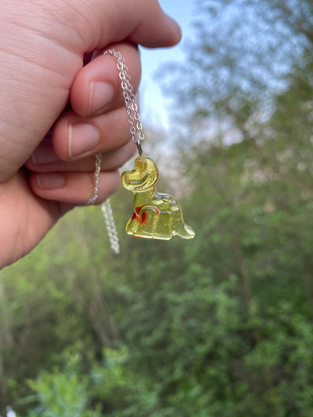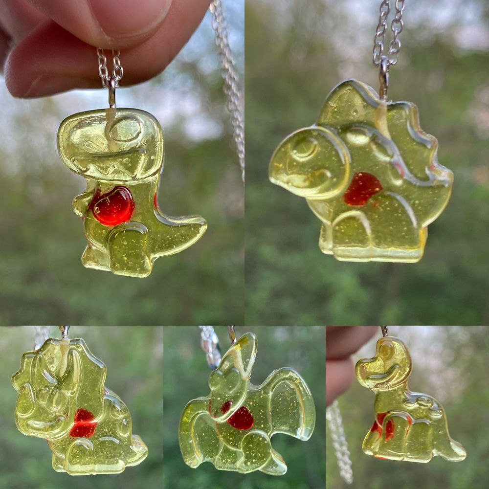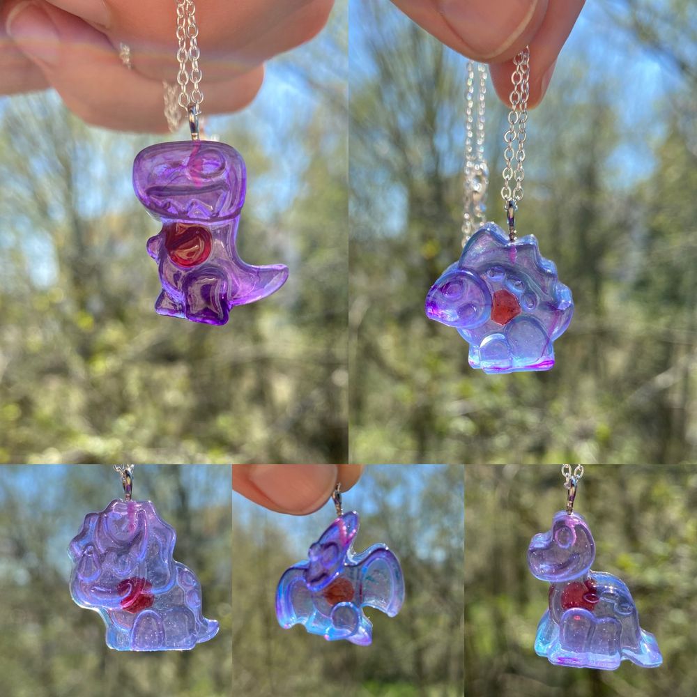 Dinosaurs with hearts resin necklaces