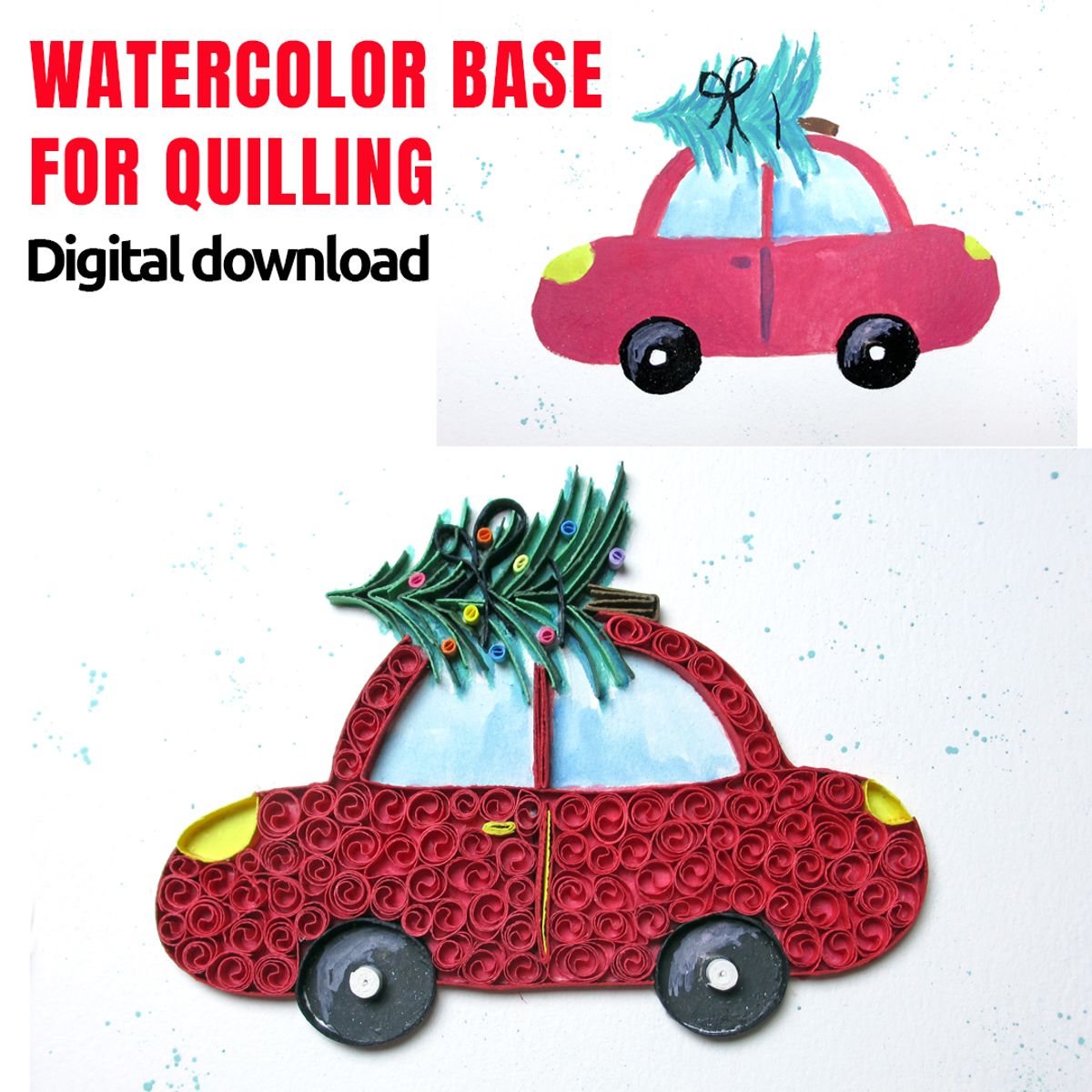 "Christmas Magic Unfolds with Watercolor Quilling!" Digital Download - Watercolor Base for Quilling
