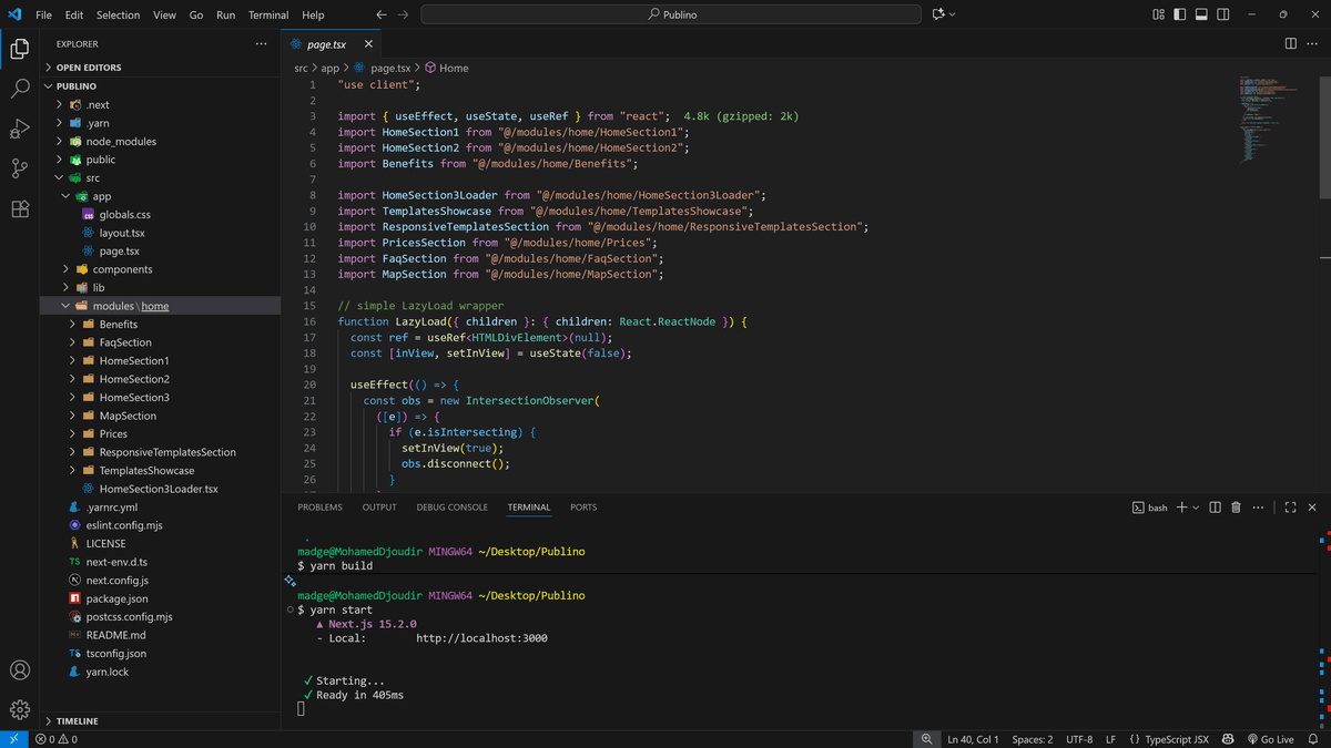 Next.js landing page dark mode