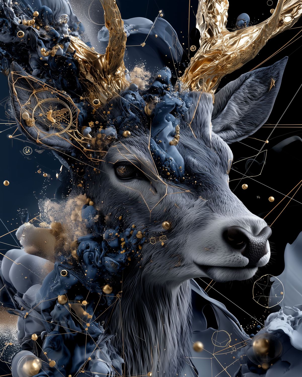 Capricorn Zodiac Wall Art – Golden Celestial Deer Constellation Print | Earth Sign Astrology Decor & Horoscope Birthday Gift