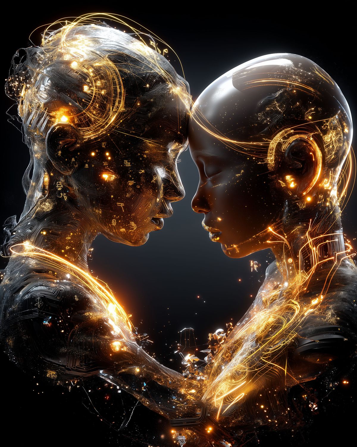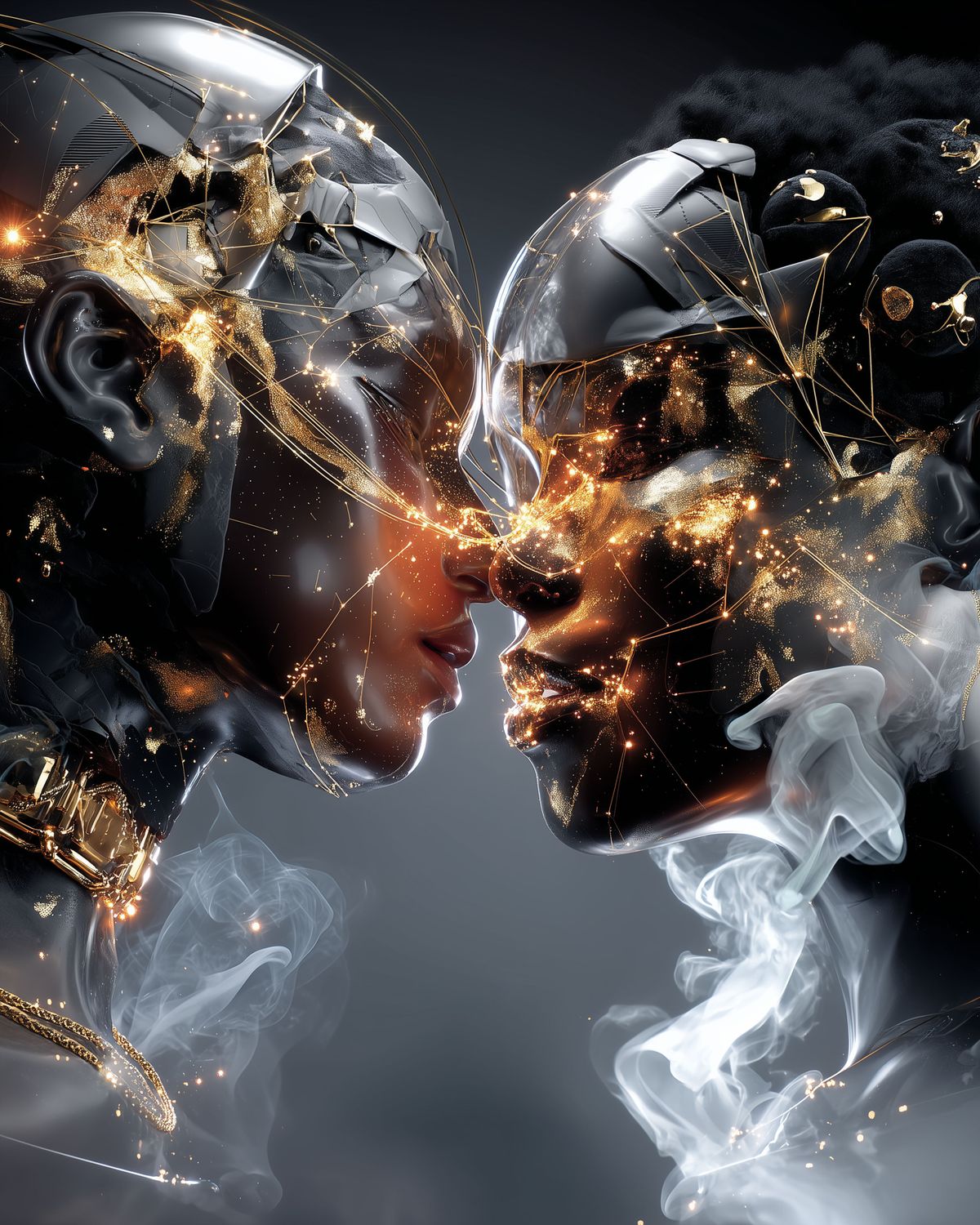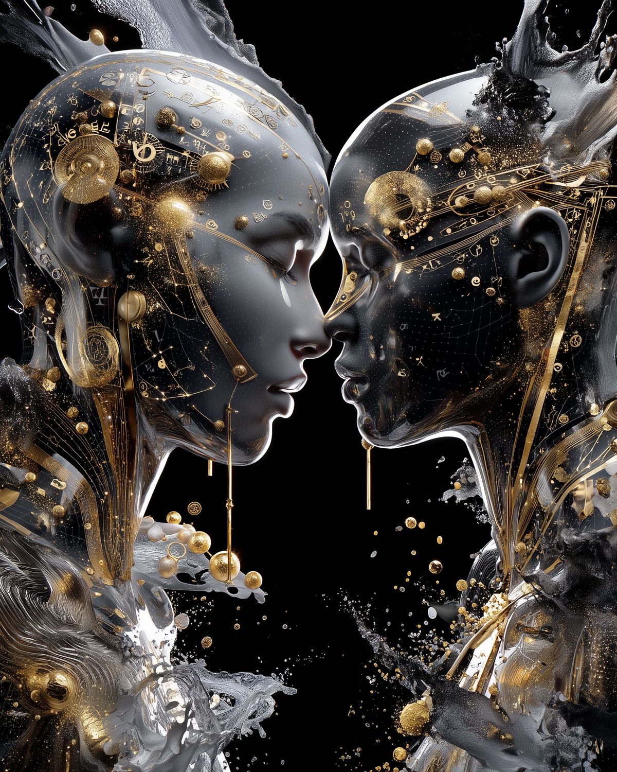 Gemini Zodiac Wall Art – Golden Celestial Twins Digital Print | Futuristic Astrology Decor for Horoscope Lovers & Star Sign Gifts