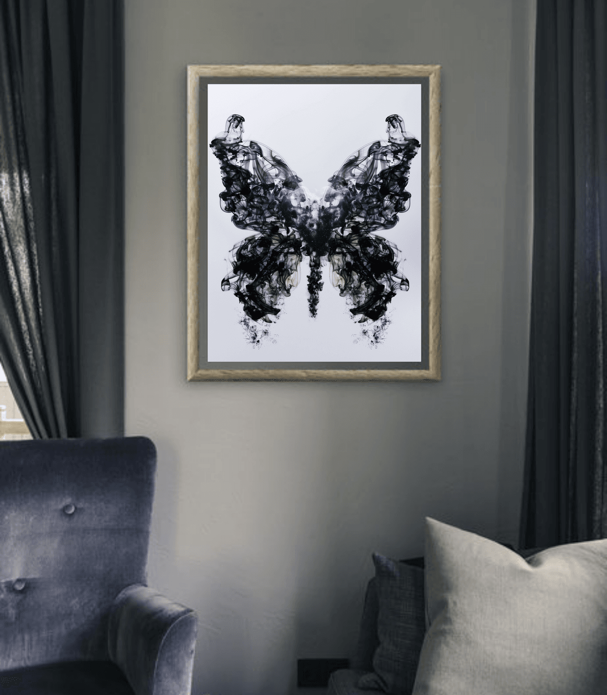 Ink Smoke Butterfly Wall Art Print | Abstract Modern Butterfly Decor for Bedroom or Living Room, Nature-Inspired Surreal Aesthetic
