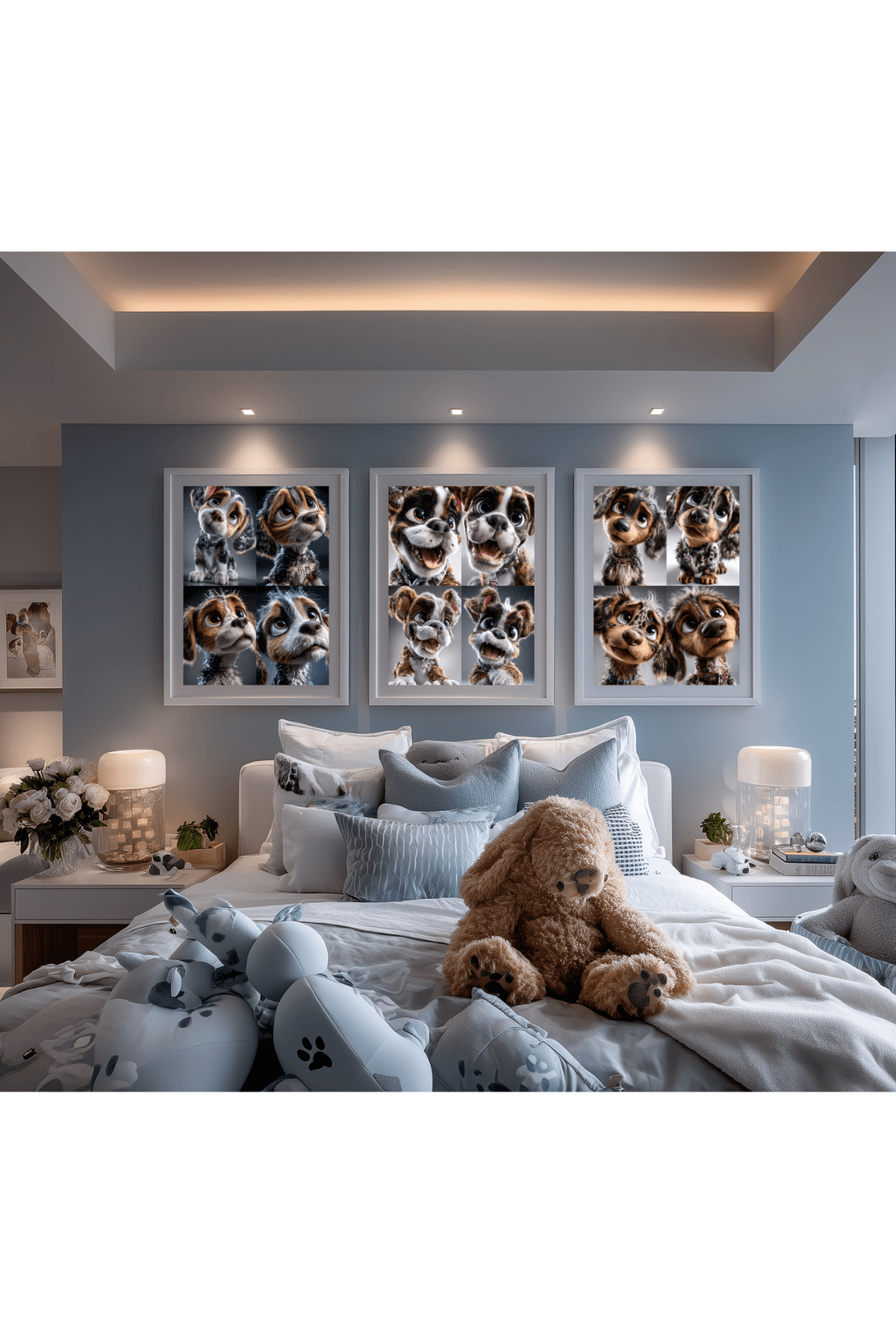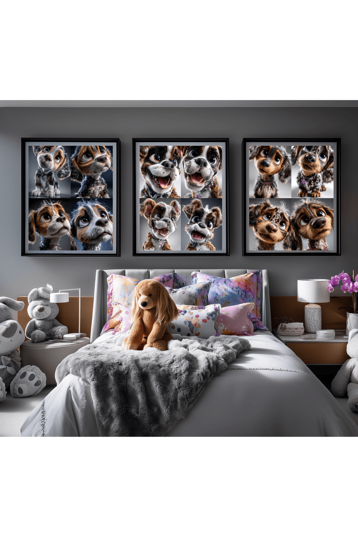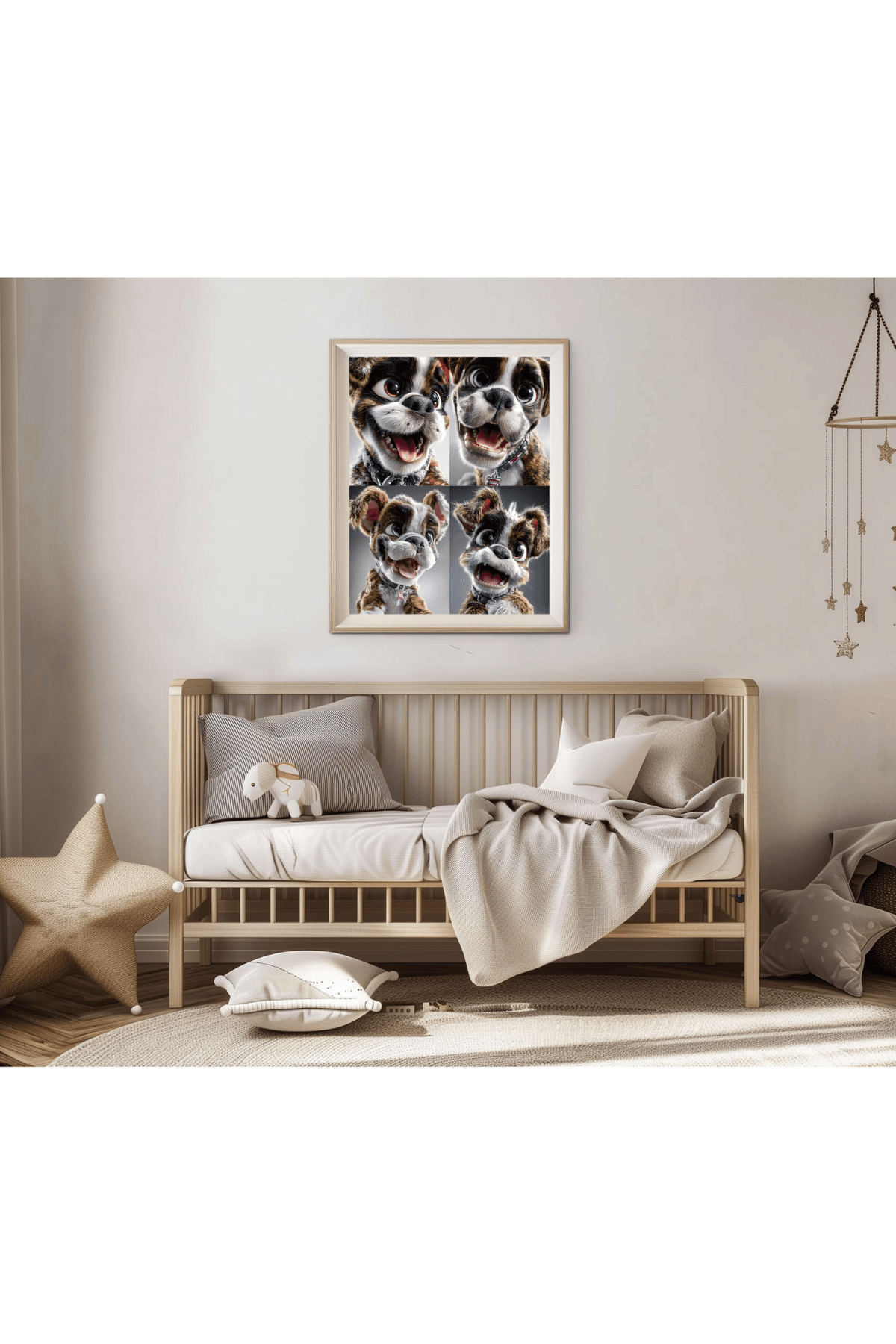 Boxer Puppy Digital Art | Cute Cartoon Dog Wall Print, Smiling Big Eye Pup Nursery Decor for Dog Lovers