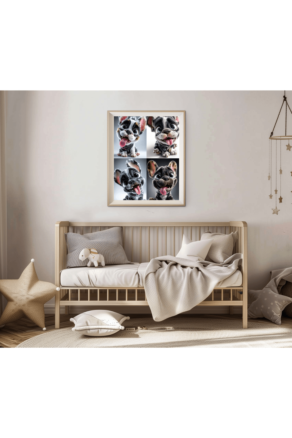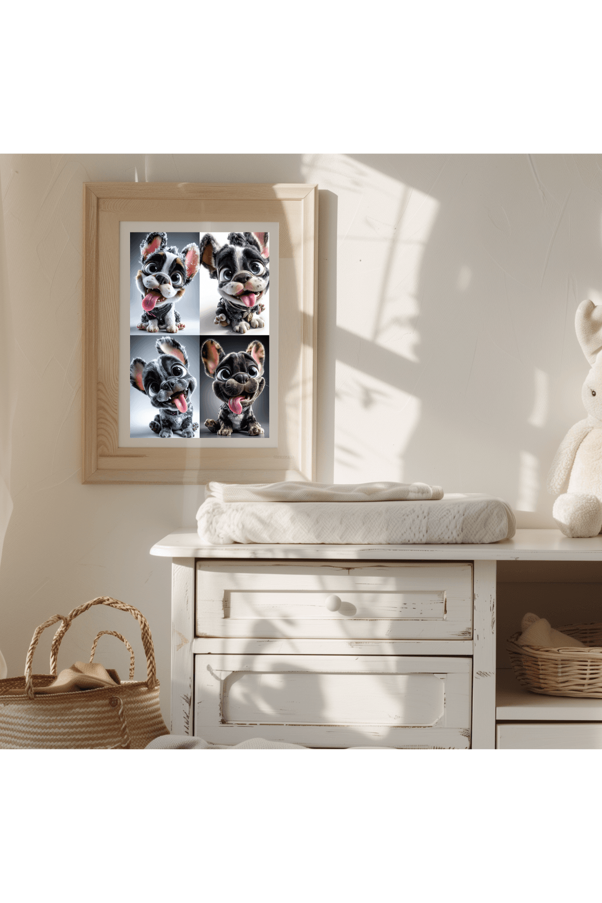 French Bulldog Puppy Wall Art | Cute Cartoon Frenchie Dog Print with Big Eyes, Tongue Out | Digital Pet Decor