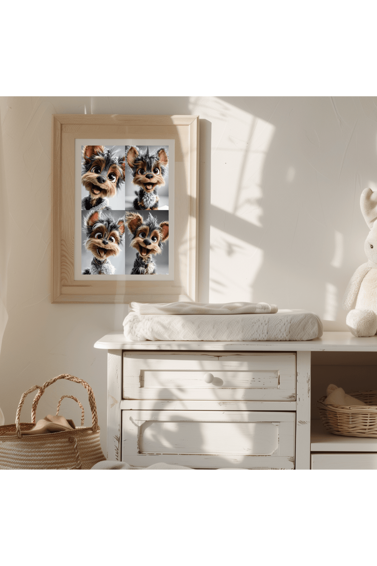 Yorkshire Terrier Puppy Print | Cute Yorkie Dog Art with Big Eyes & Happy Smile | Cartoon-Style Digital Pet Wall Decor