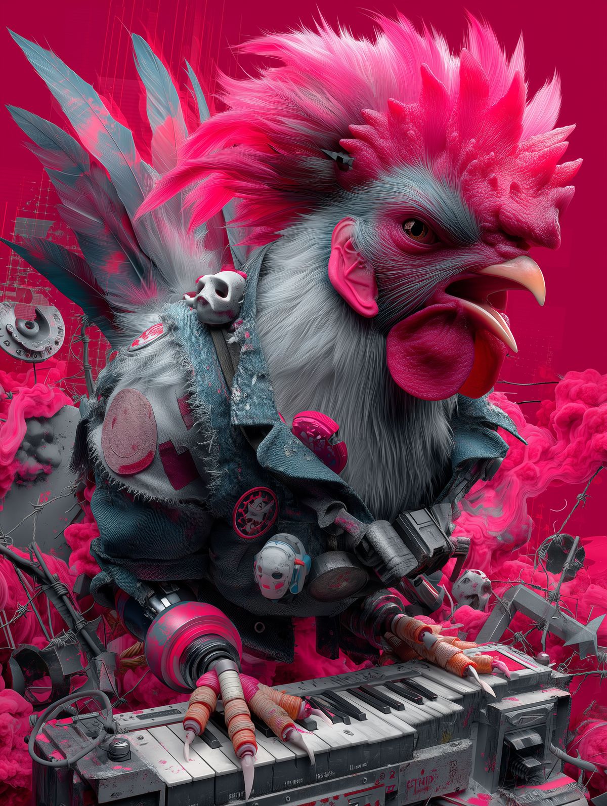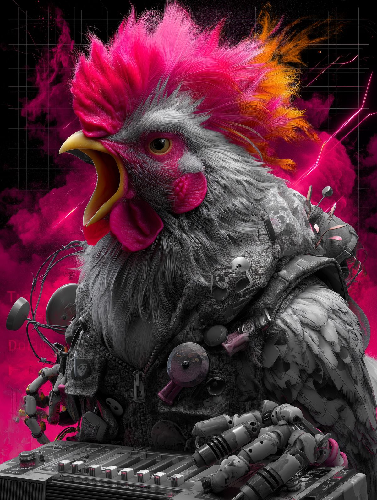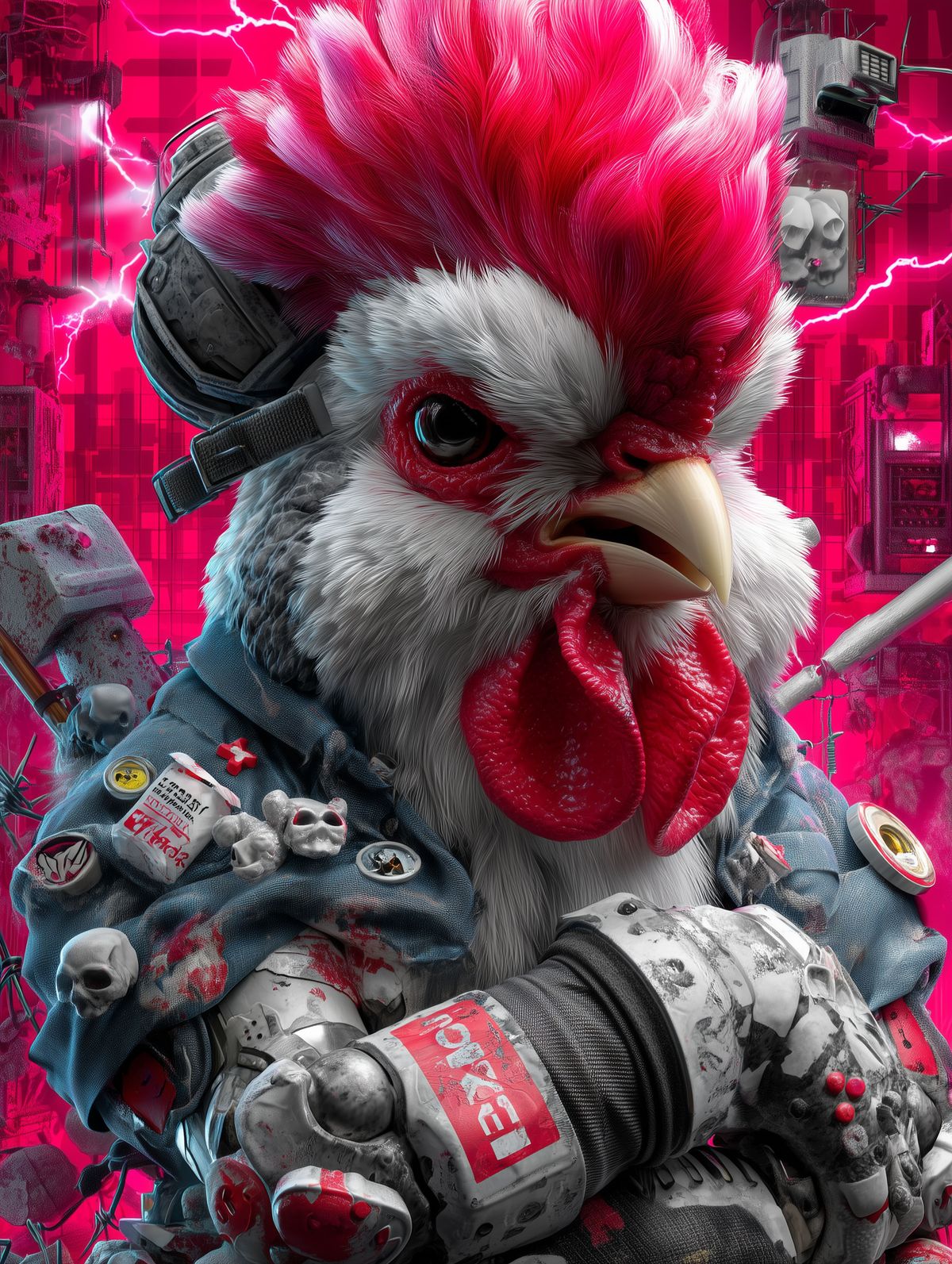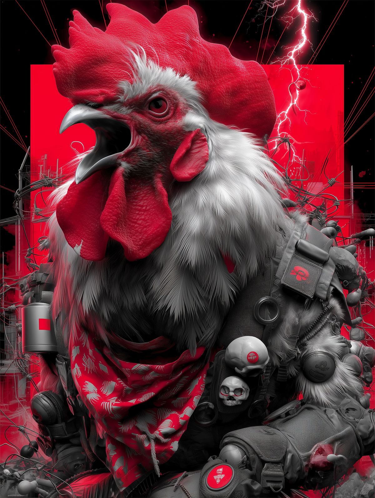 Polish War Rooster Print – Angry Chicken in Tactical Gear with Red Lightning & Protest Bandana Wall Art