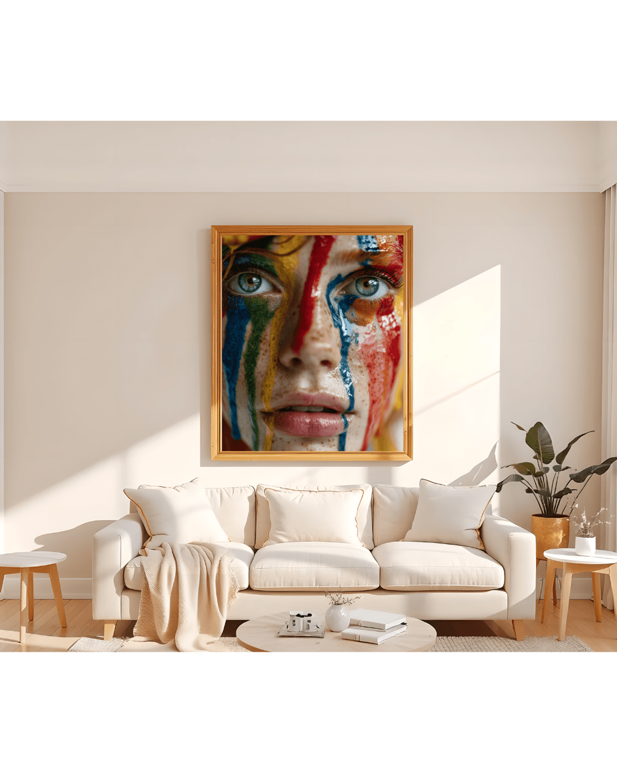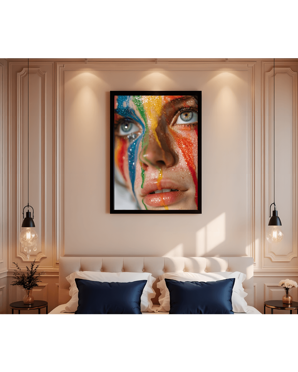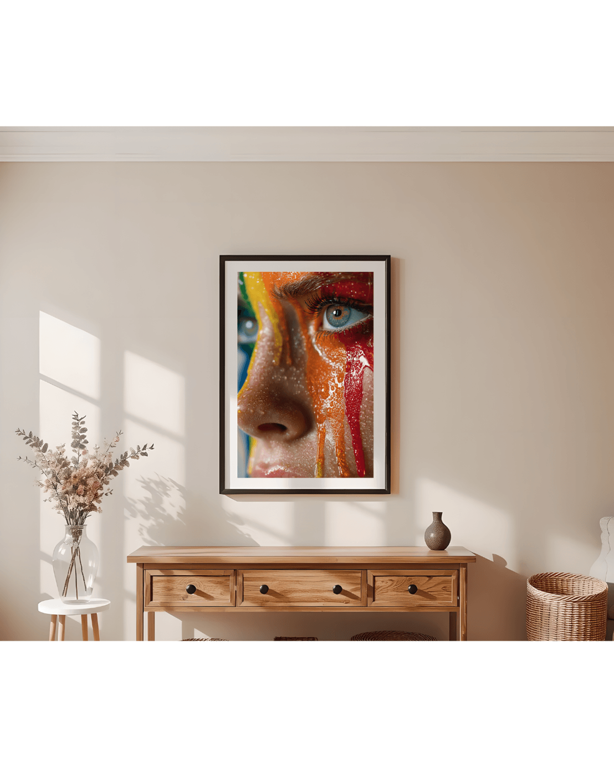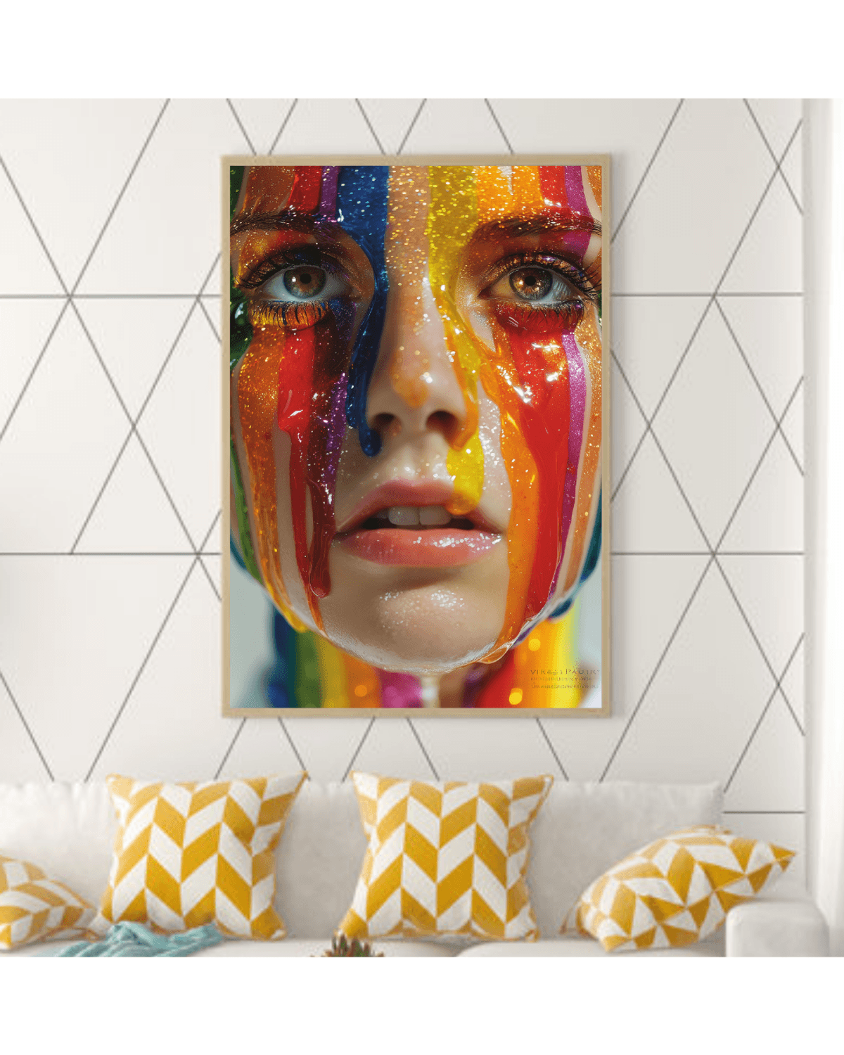 Rainbow Drip Woman Portrait – Vivid Close-Up Fantasy Face with Glitter Paint, LGBTQ Pride Art Print