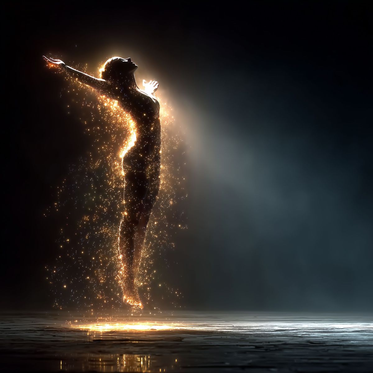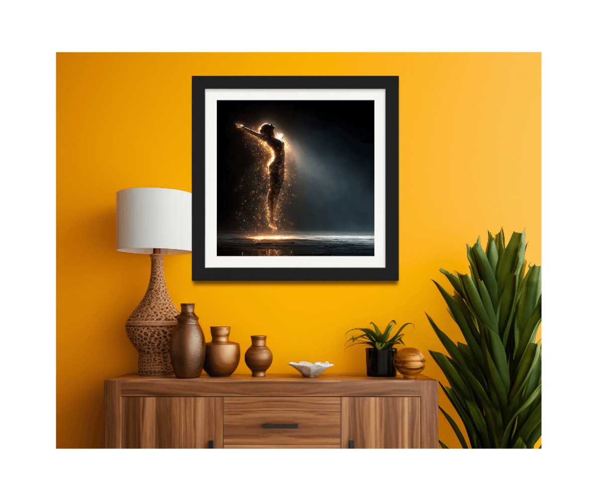 Liberation Glow Art Print – Ascending Female Figure in Light, Radiant Energy Digital Wall Art with Sparkling Aura