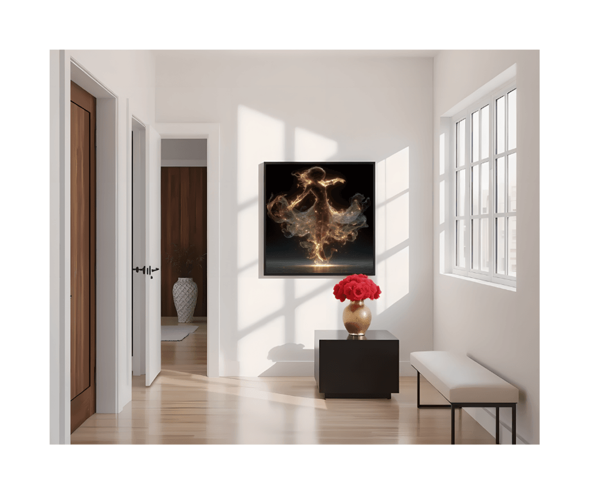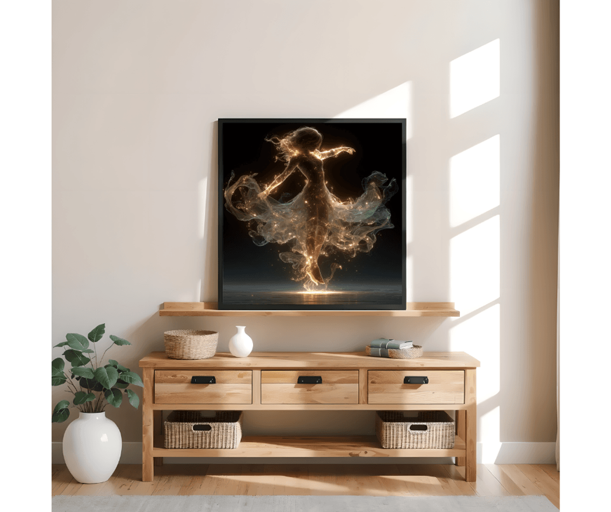 Luminous Ballerina Dance Art Print – Elegant Woman in Glow Dress Spinning Gracefully, Fantasy Wall Decor for Dancers
