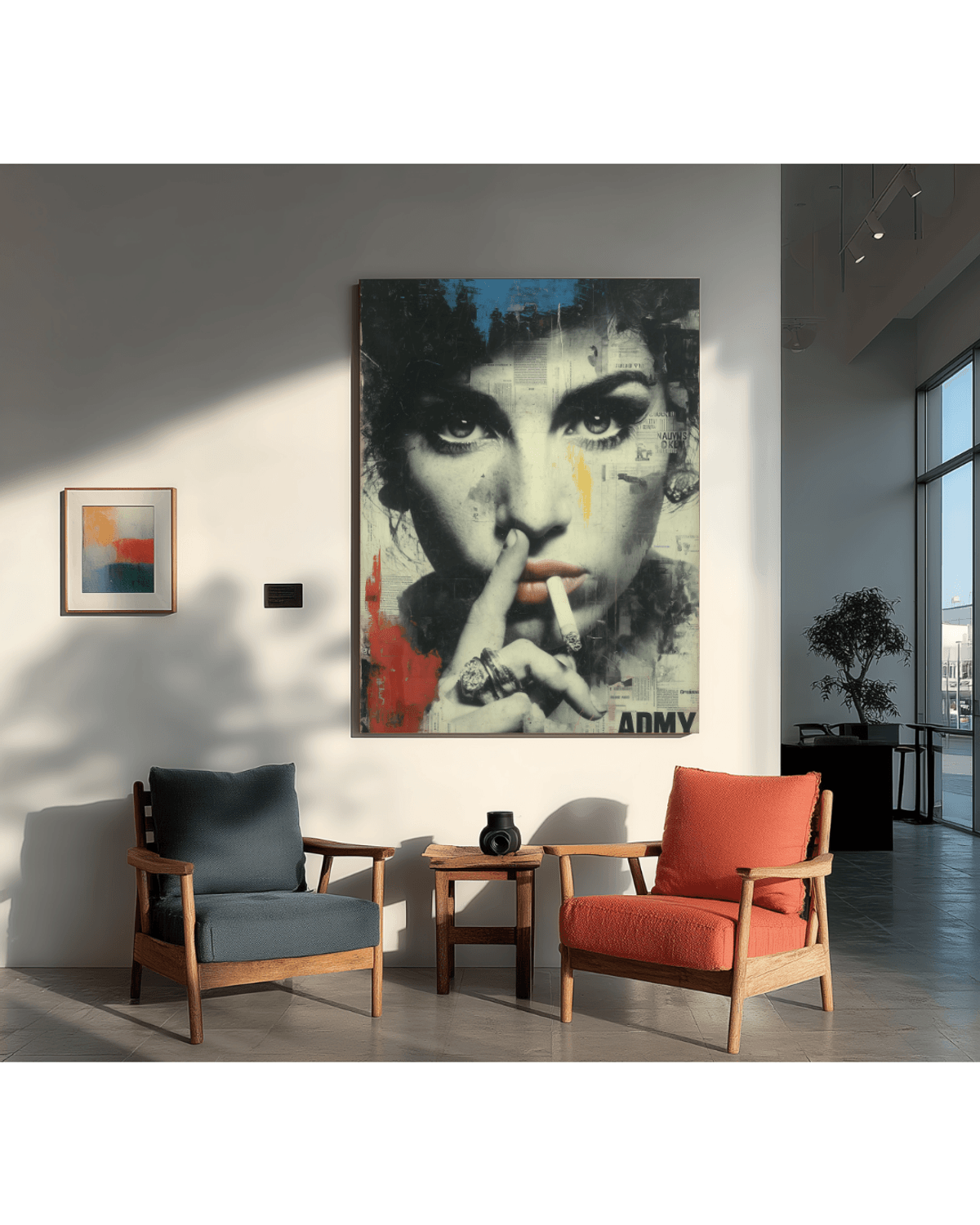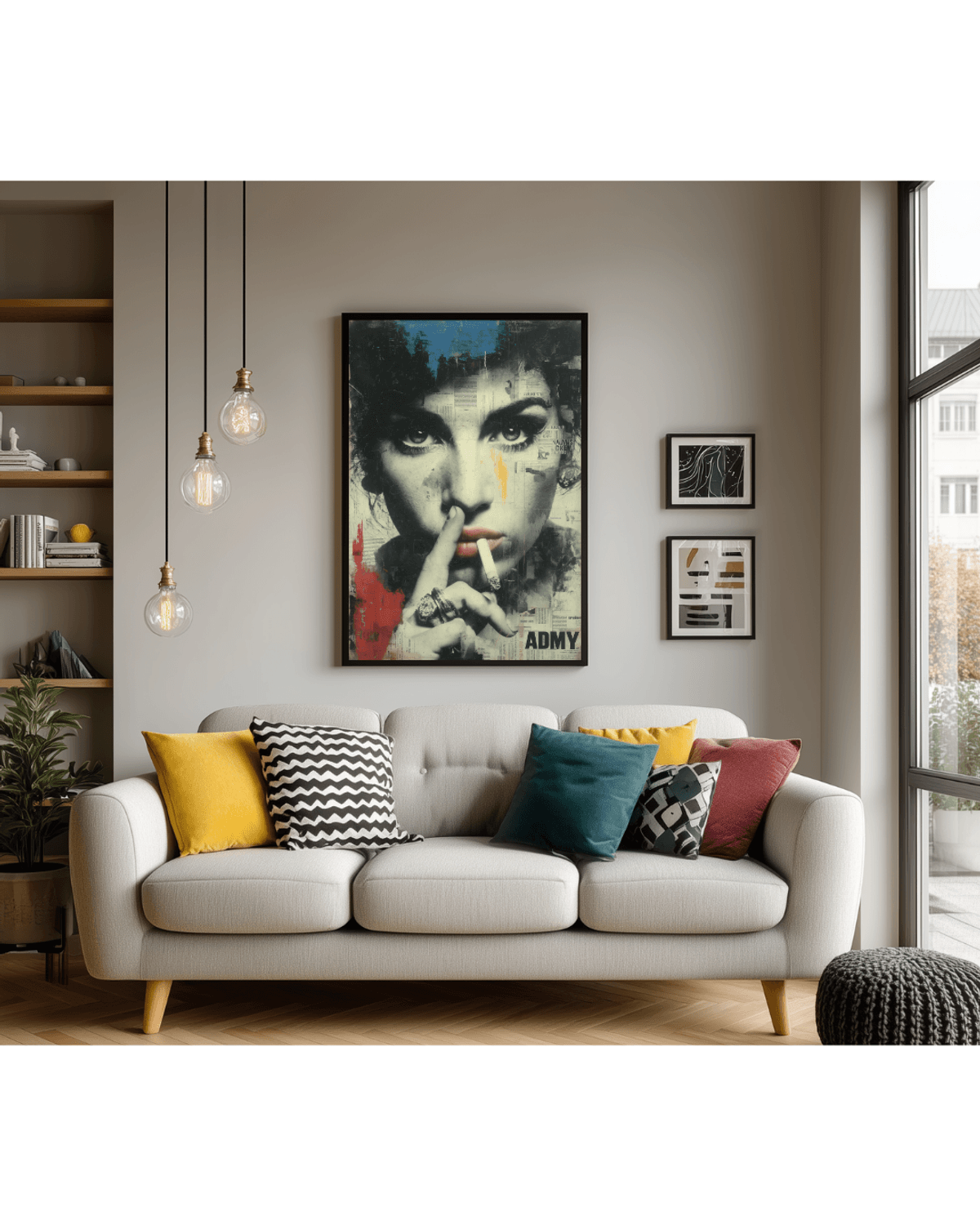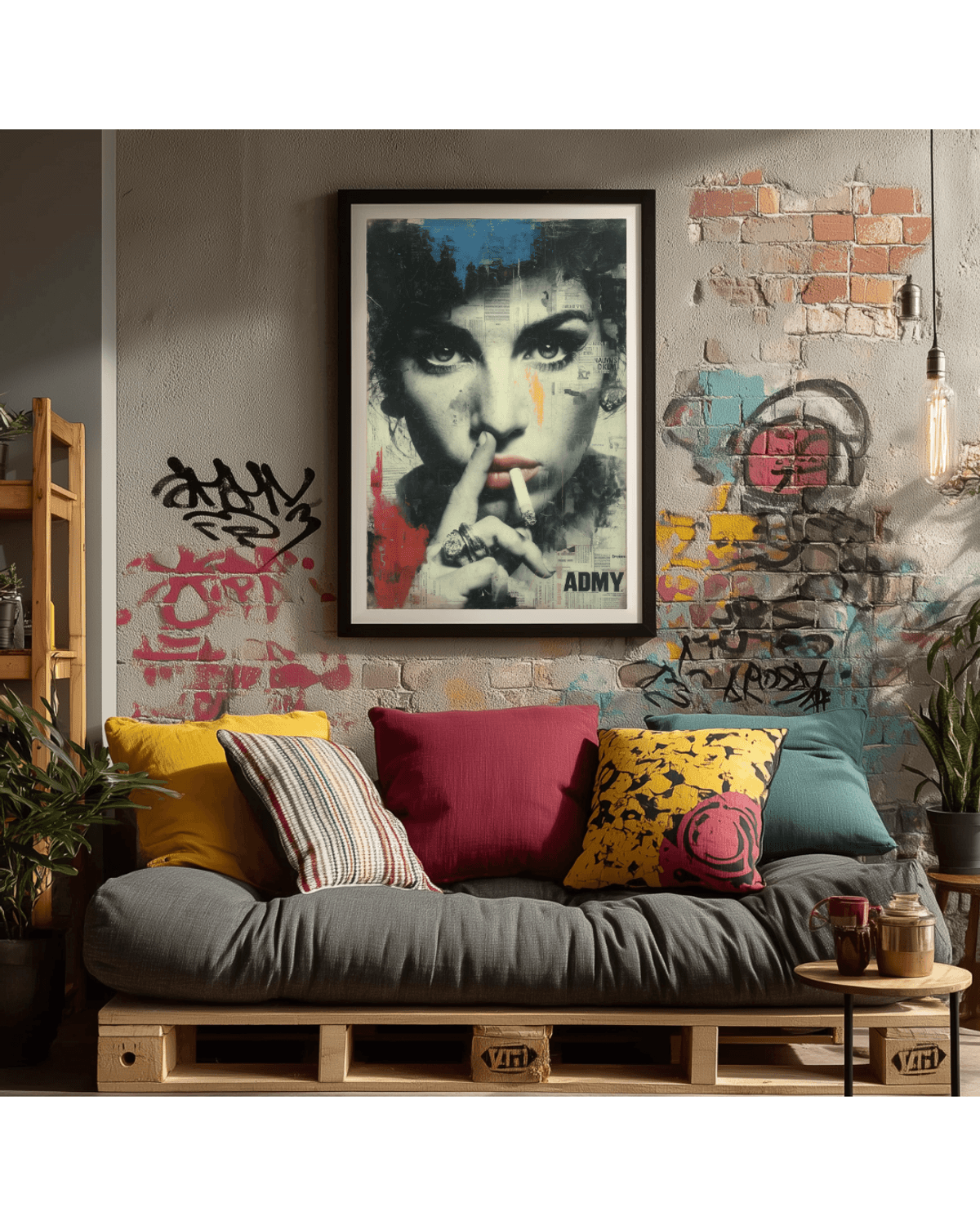 Amy Winehouse Graffiti Pop Art Print – Bold Urban Collage Portrait with Newspaper Texture, Mixed Media Style, Digital Wall Art Poster