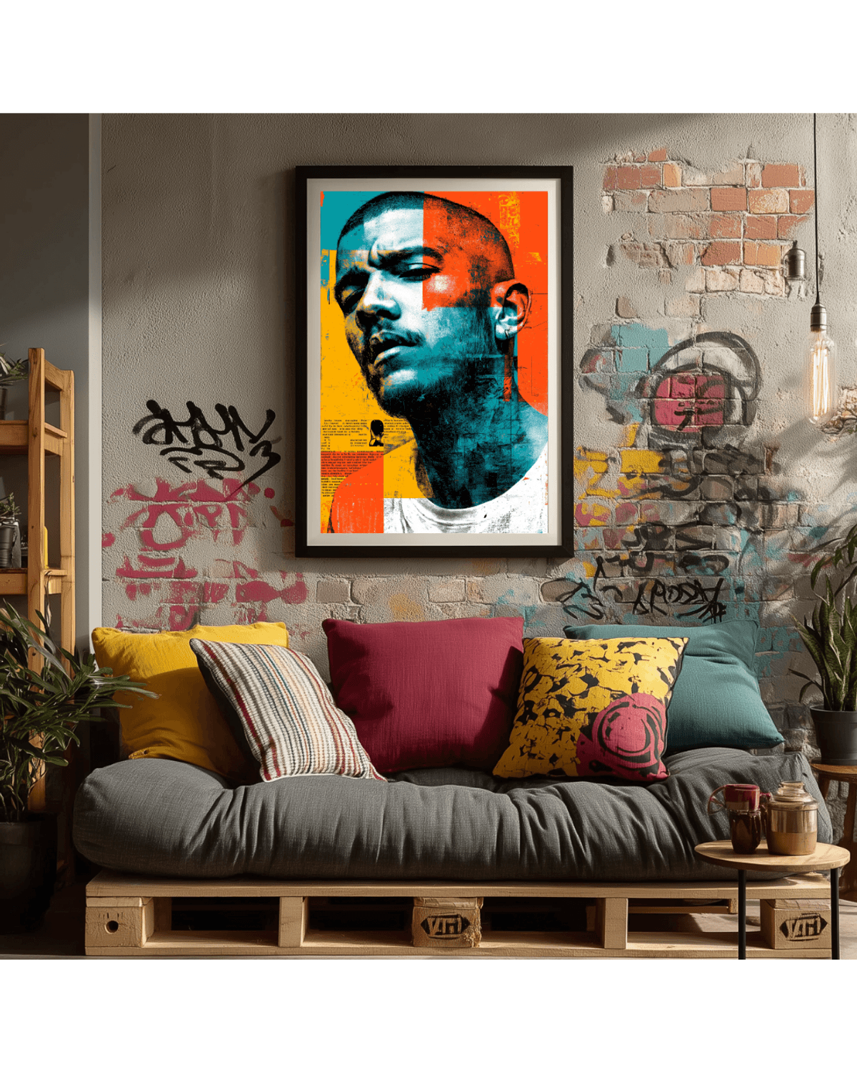 Frank Ocean Graffiti Collage Art Print – Soulful Pop Portrait with Urban Texture | Modern Wall Art for Music Fans