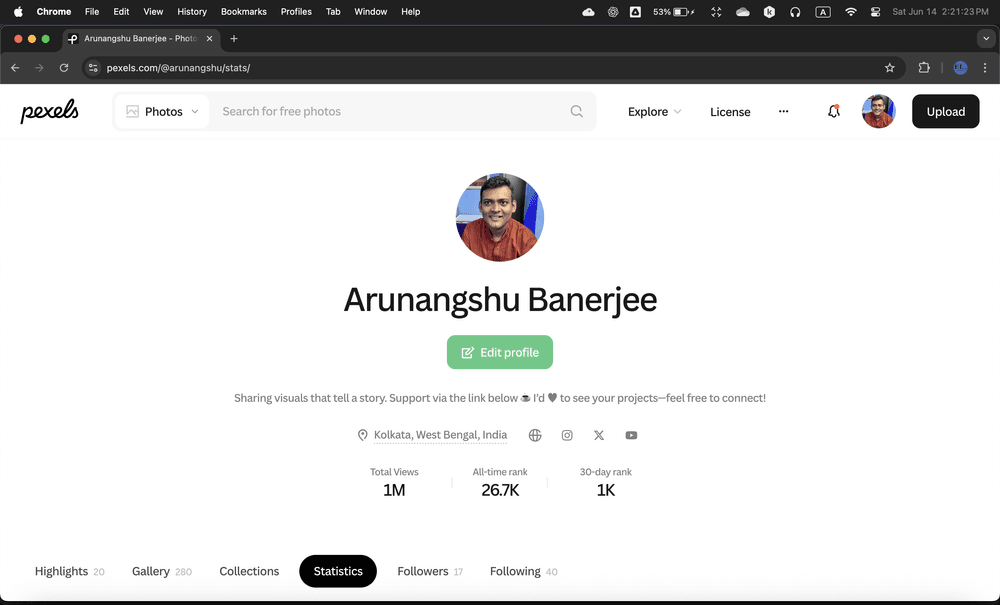 Just hit my first 1 Million views on Pexels 🎉✨