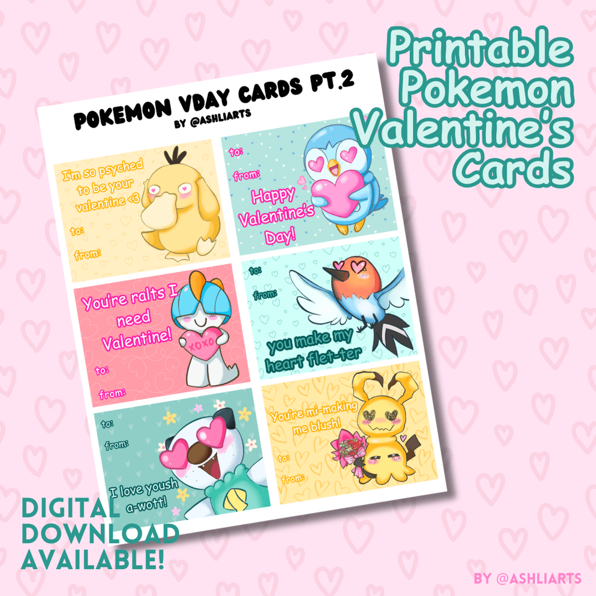 Pokemon Theme Valentine's Card Printouts