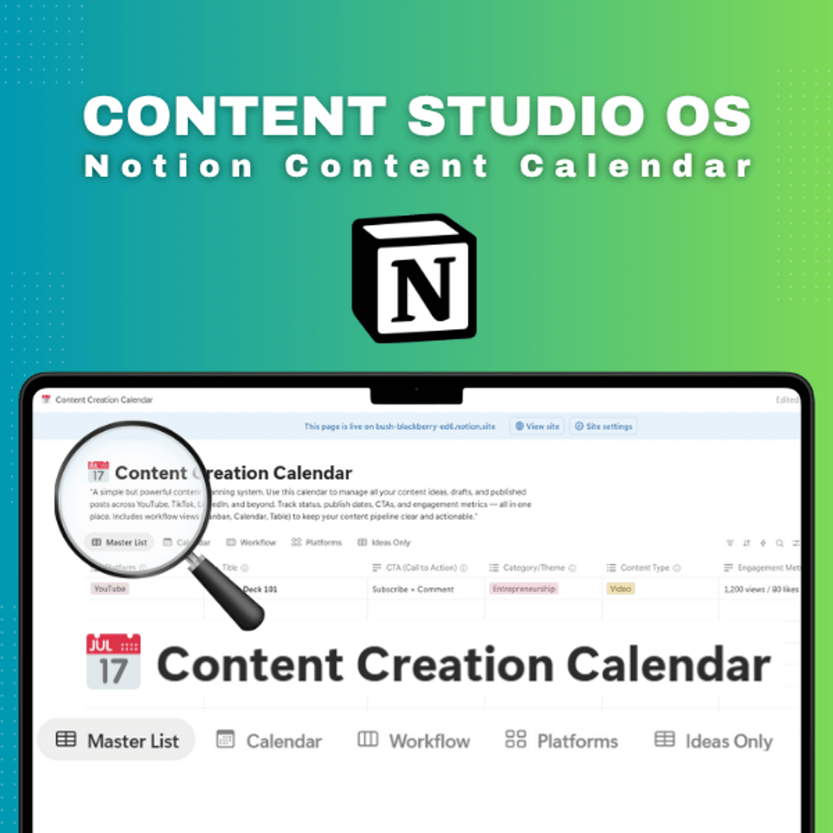 Notion Content Creation Calendar