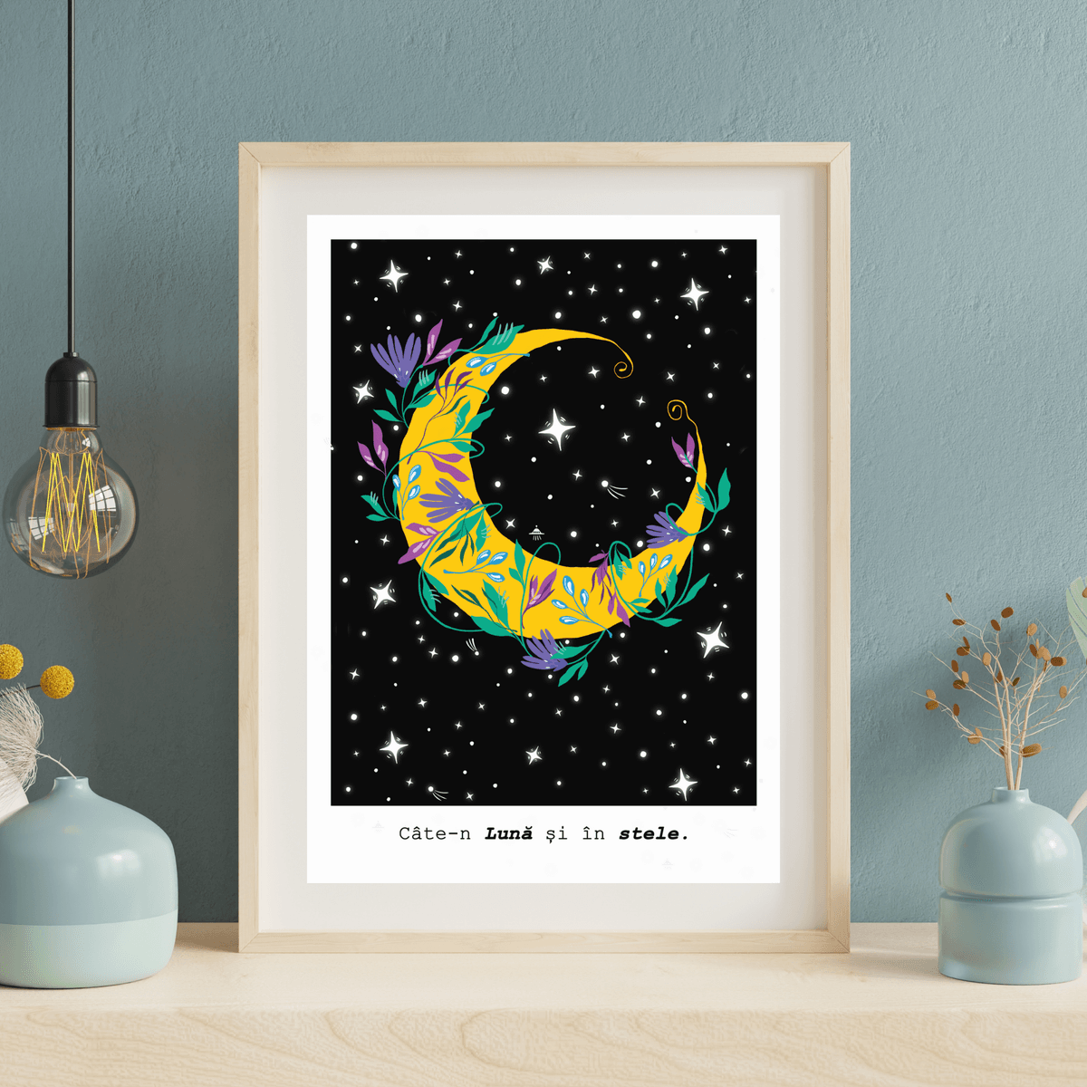 Cate-n Luna si in Stele - Art print