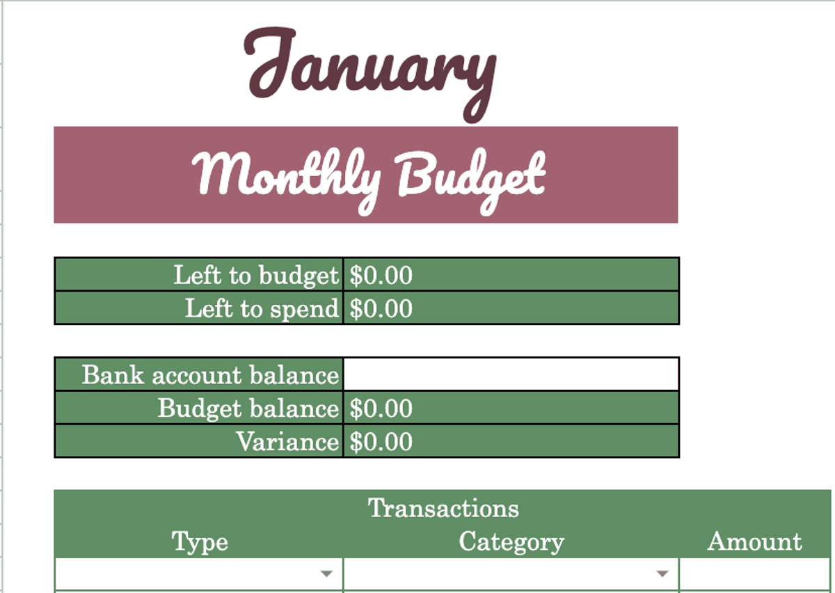budget dashboard template