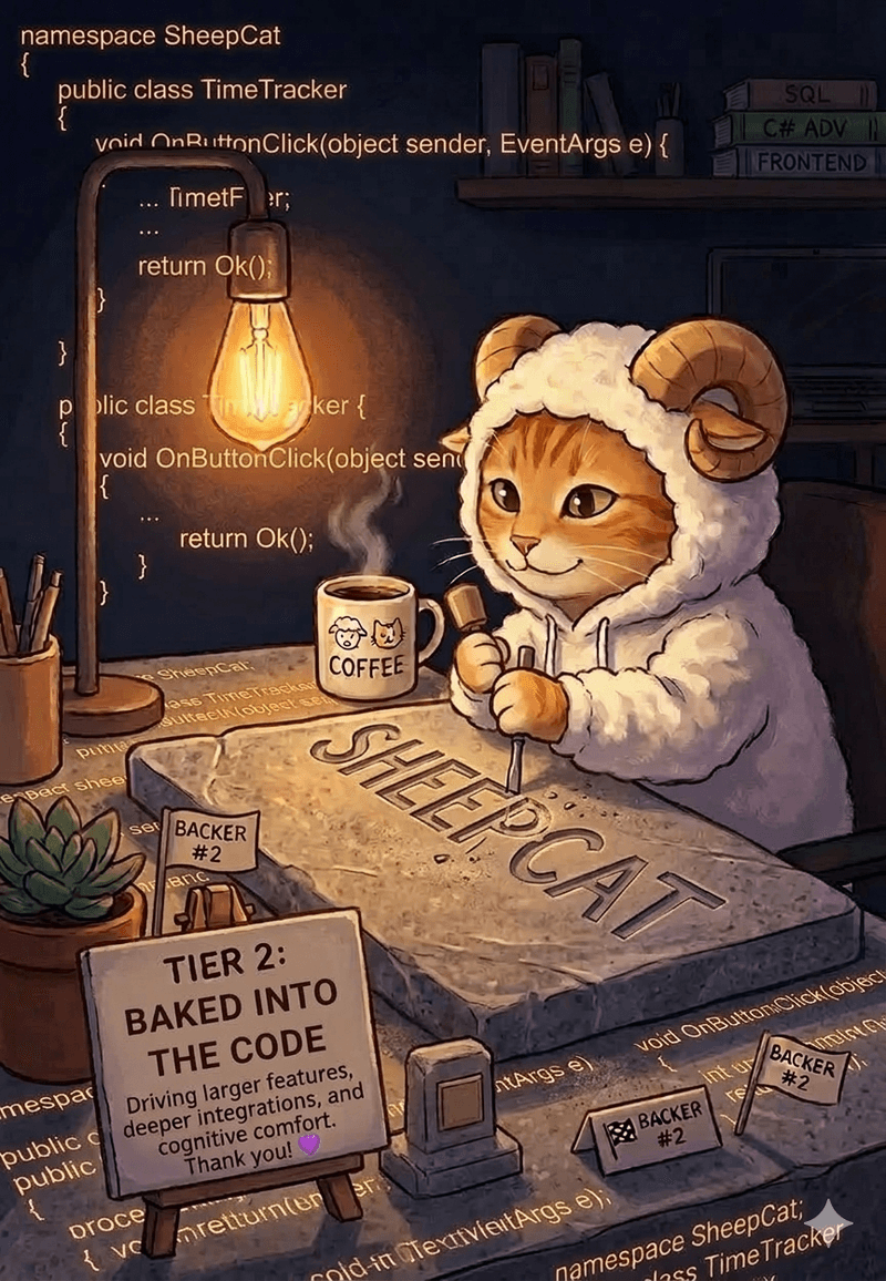 Your name proudly listed in the "Monthly Backers" section of the SheepCat GitHub readme.md