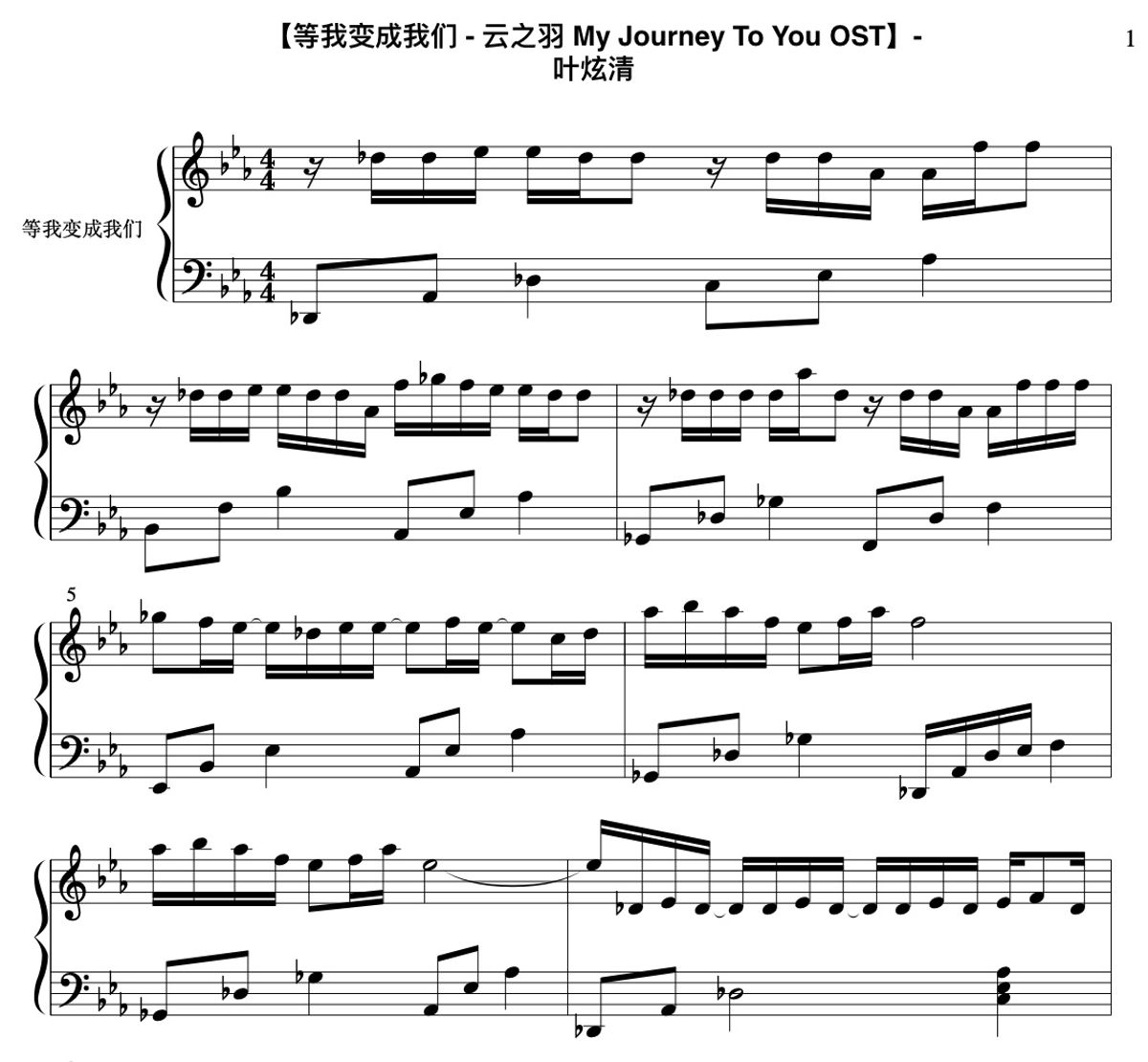 【等我变成我们 - 云之羽 My Journey To You OST】- 叶炫清|Piano Cover & Piano Sheet Music