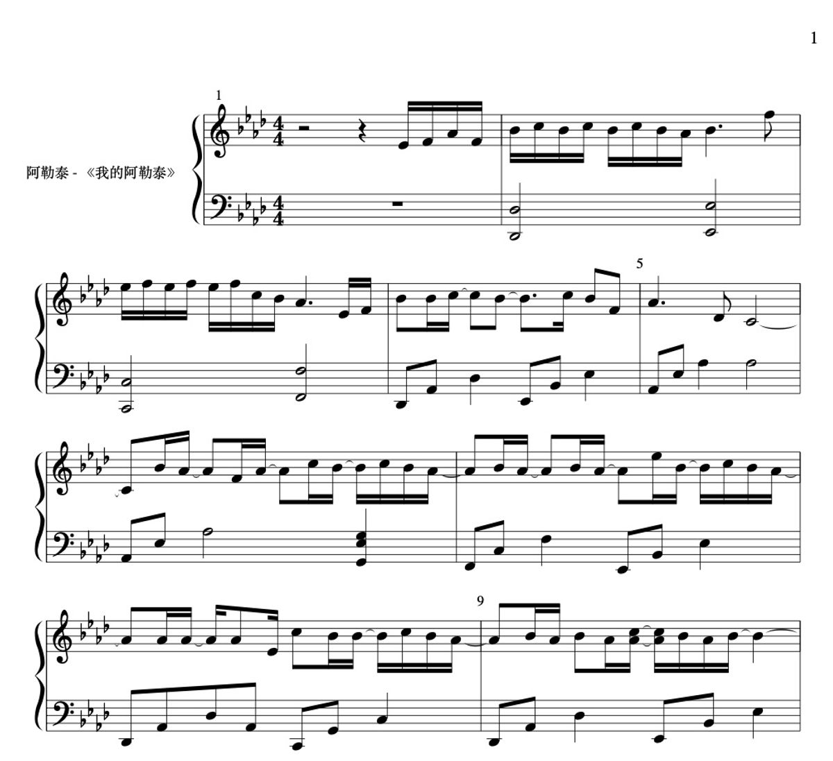 《阿勒泰 - 早晚晚》- 钢琴谱 - Piano Sheet
