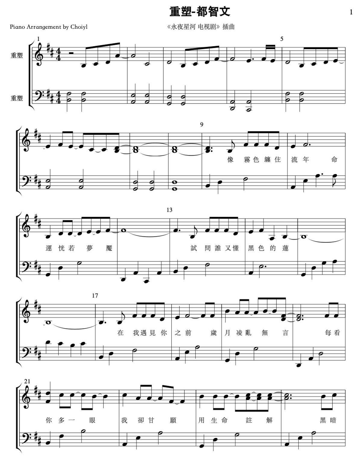 【永夜星河】重塑 (Reshape) - 都智文 (Baby·J)|钢琴谱 Piano Sheet with lyric