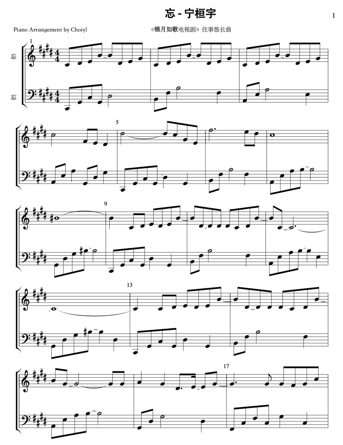 【锦月如歌-Legend of the Female General】忘 (Forget) - 宁桓宇 (Ning Huanyu) - 往事悠长曲 - 钢琴谱 Piano Sheet