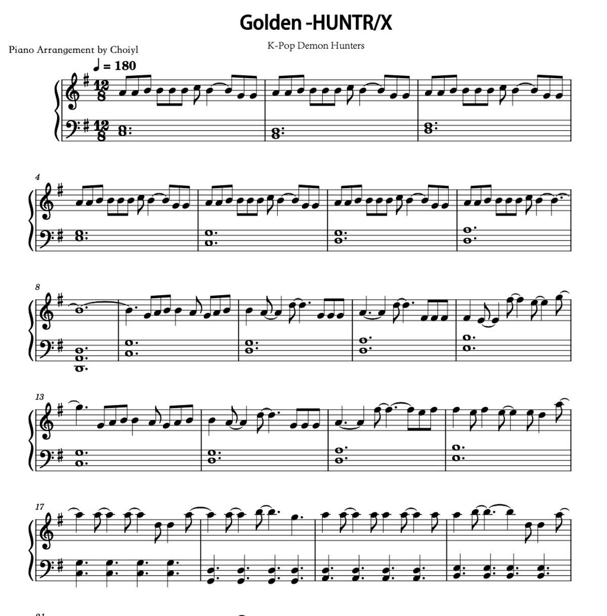 《Golden - HUNTR/X》Kpop 猎魔女团 - 钢琴谱 Piano Sheet