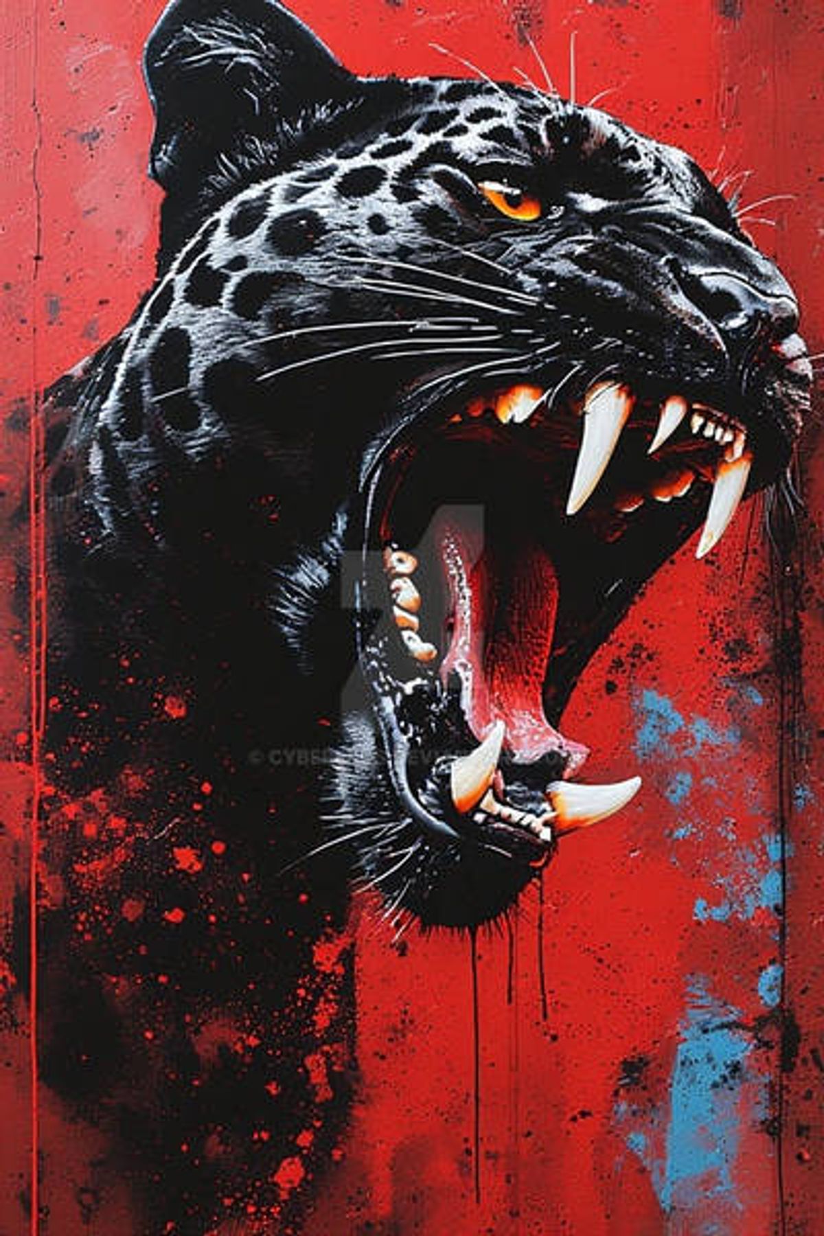 Digital Art Download – Roaring Black Panther on Red