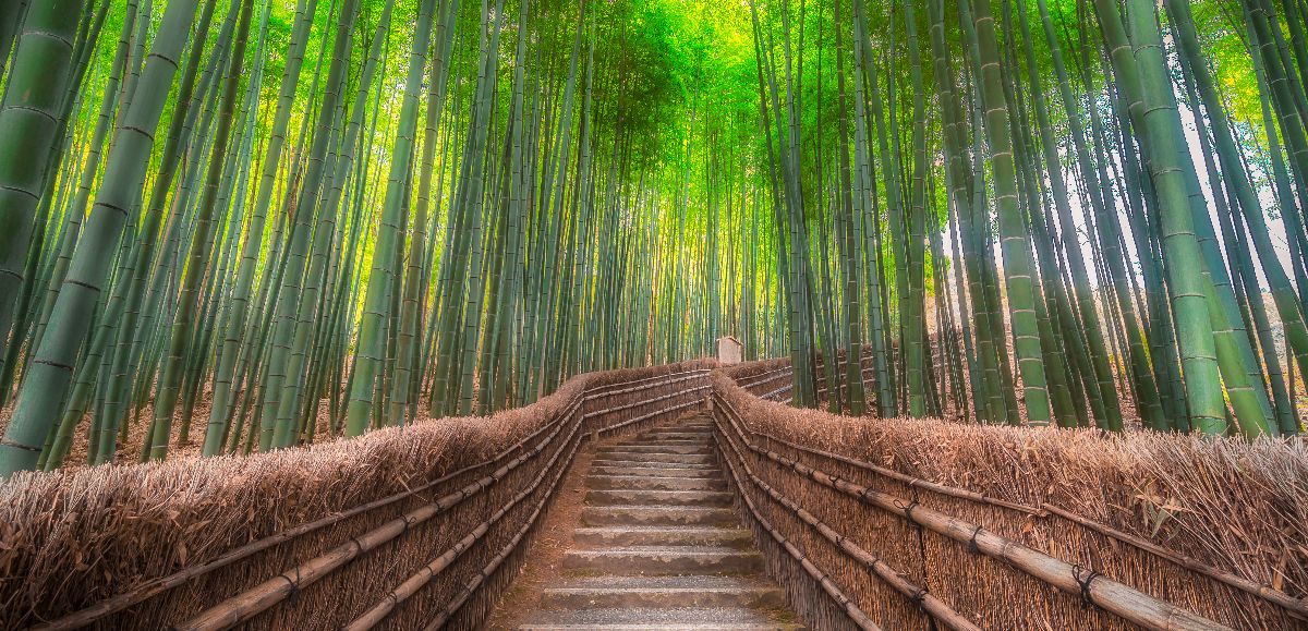 High Resolution Bamboo Forest Stairs. Kyoto.