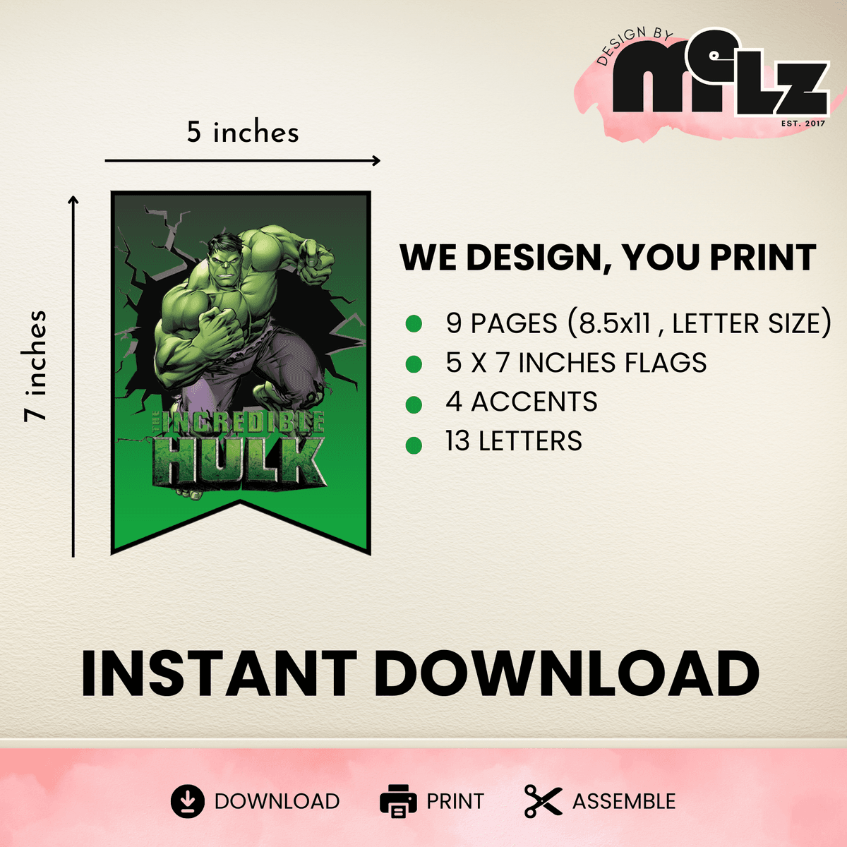 Incredible Hulk Happy Birthday Banner, Flags, Bunting, Sign, Avengers, Superhero, Party Decor, Decoration, Printable, Instant Download