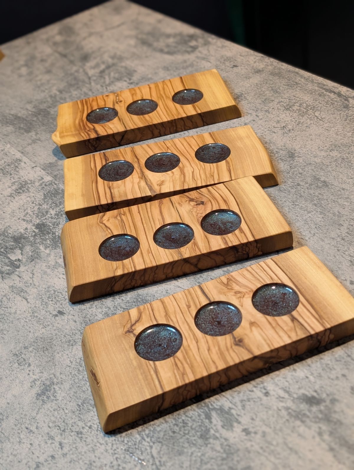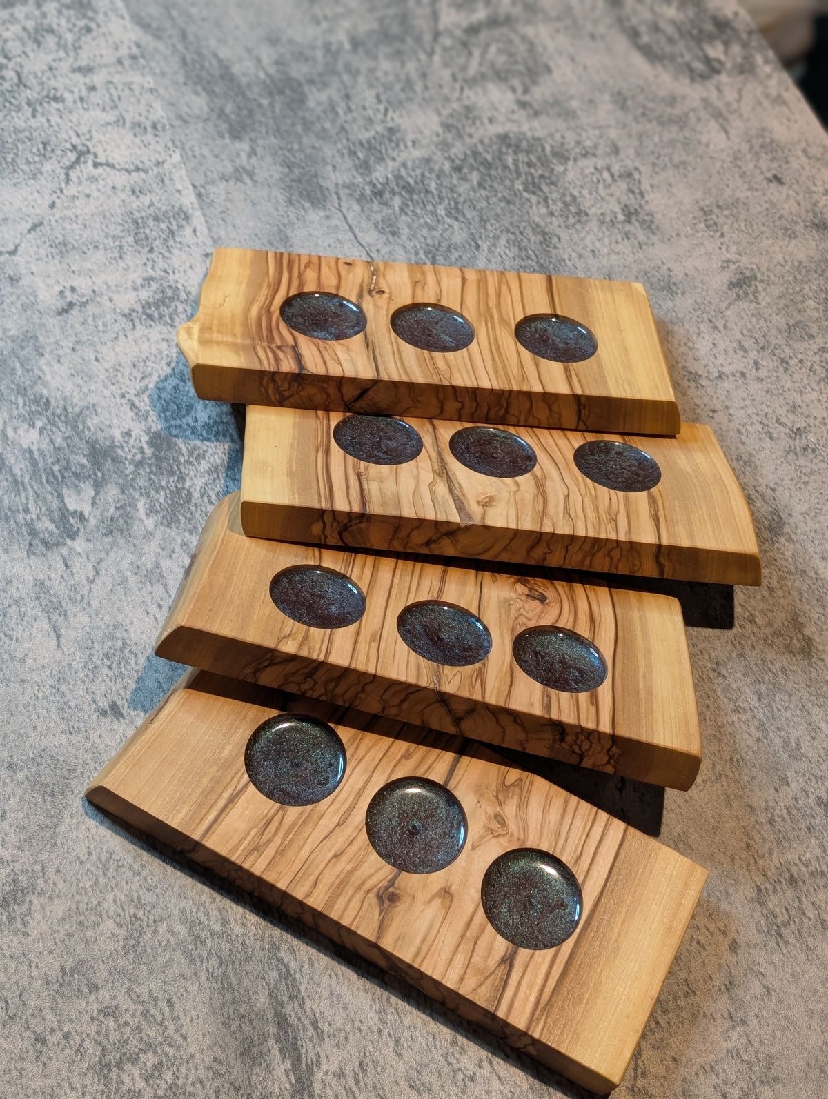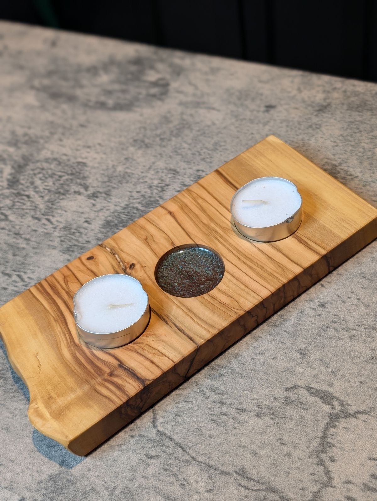 Live Edge | Olive Wood & Resin Candle Boards | Trio Holder