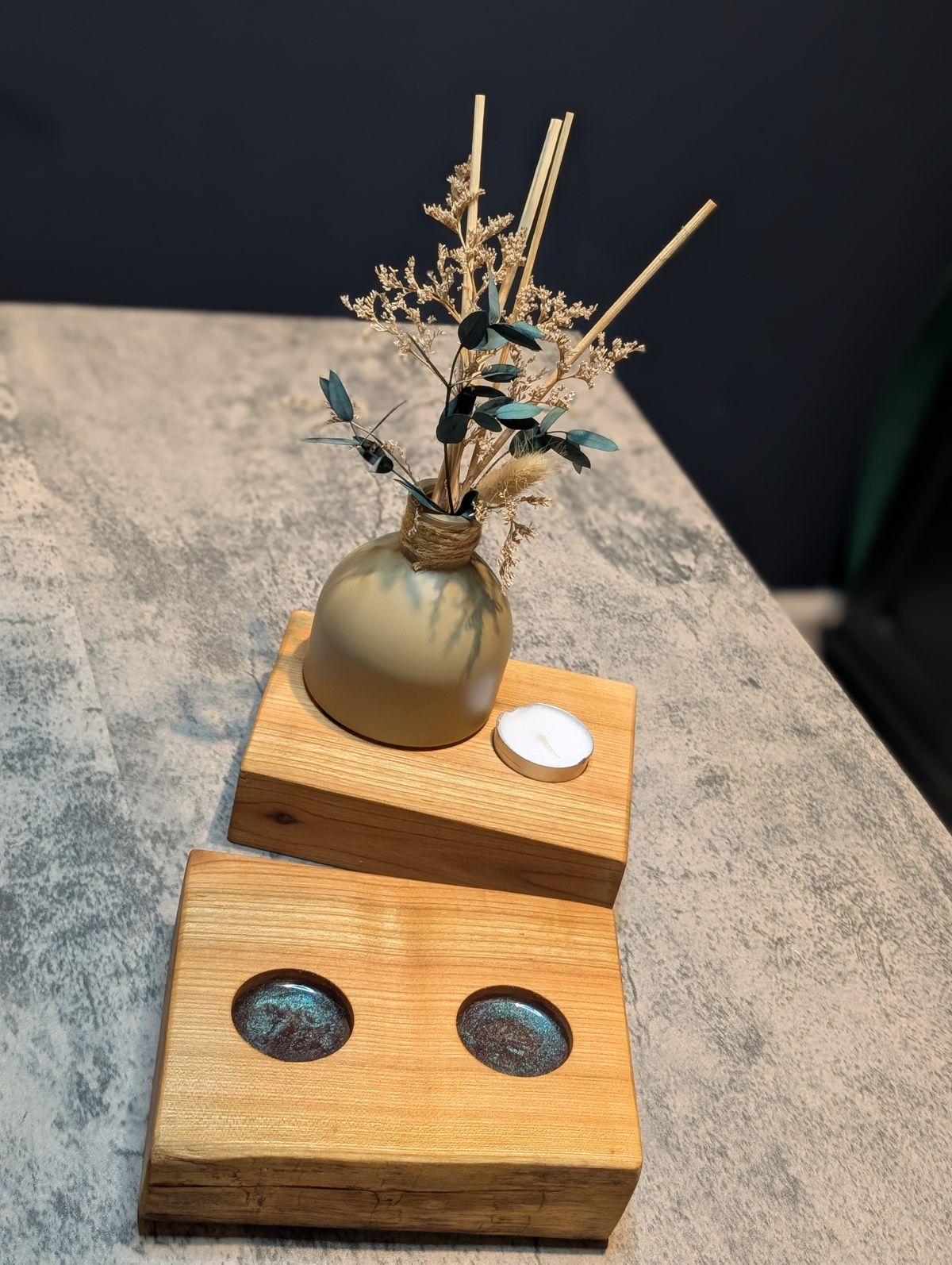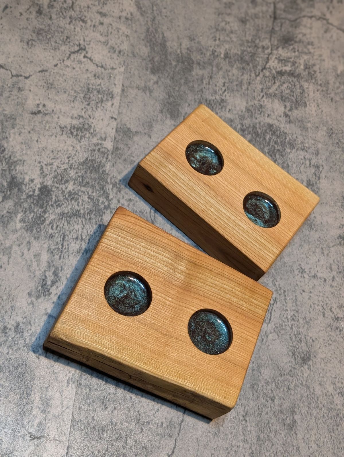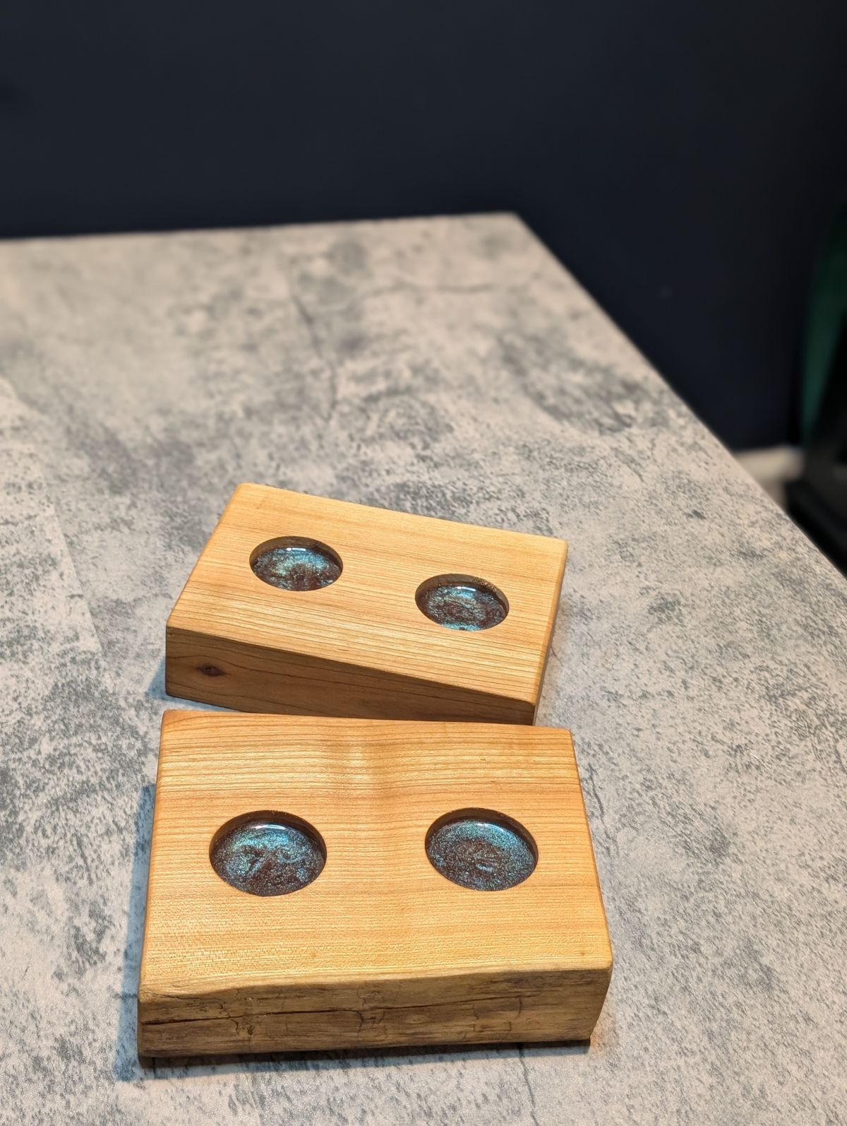 Cherry Wood Candle Block | Dual Holders with Colour-Shifting Resin