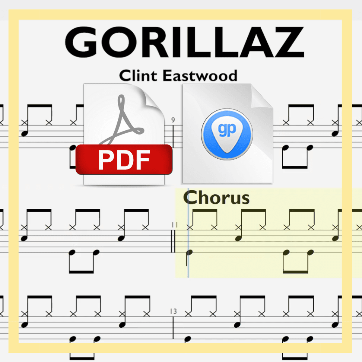 🎶Drum Sheet🎶 GORILLAZ Clint Eastwood