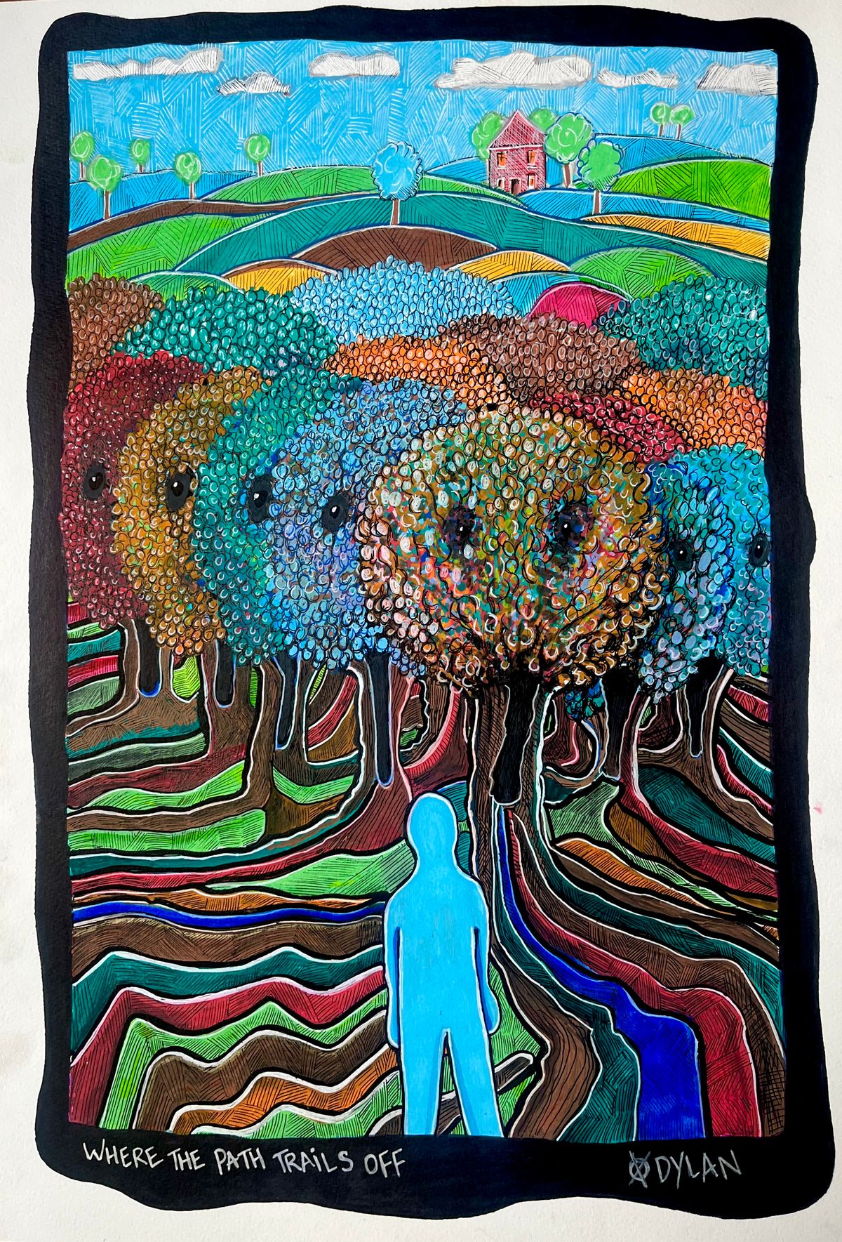 “Where the Path Trails Off.” Acrylic on 350 gsm paper. 59 x 42 cm by Dylan Gill