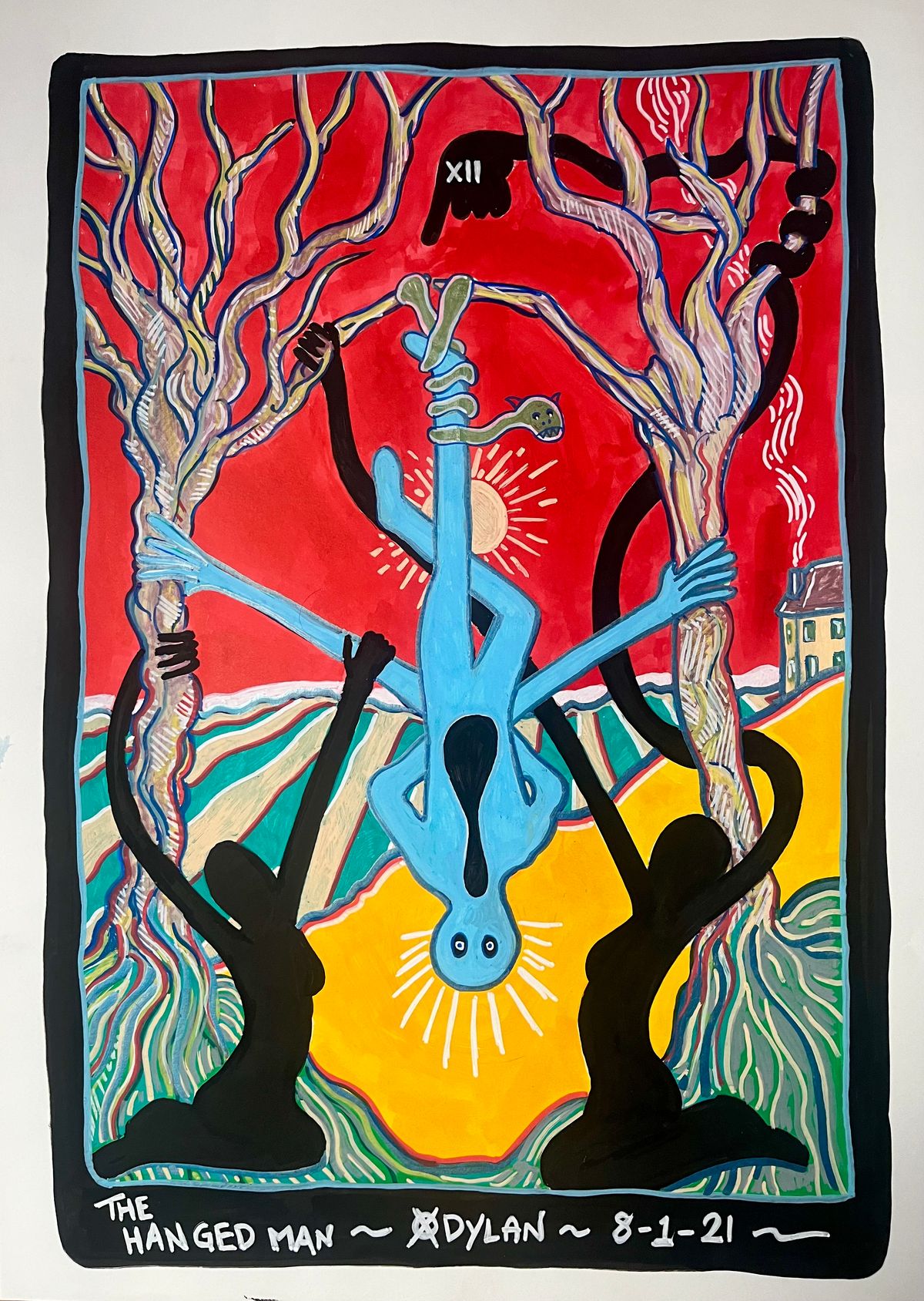 “The Hanged Man.” Acrylic on 350 gsm paper. 59 x 42 cm by Dylan Gill