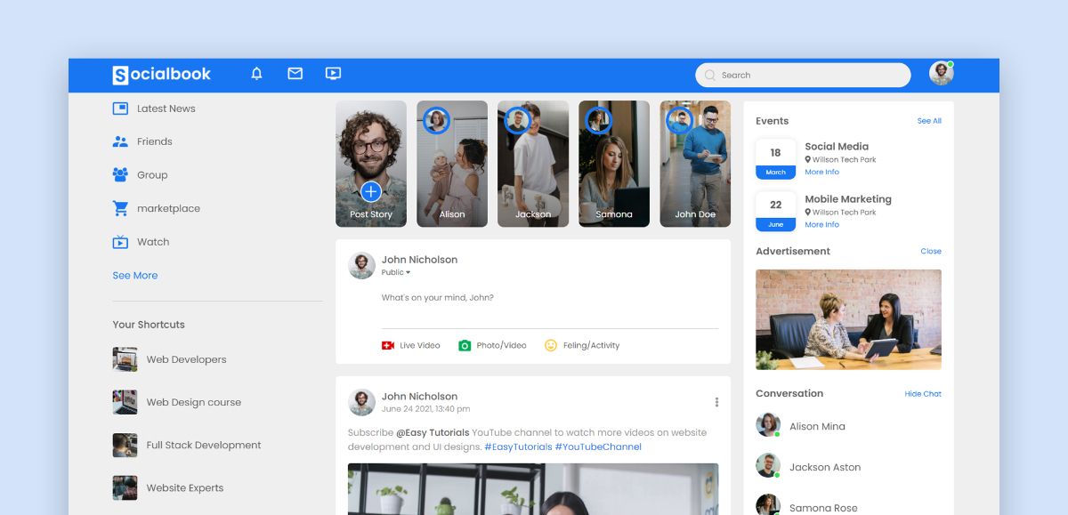 Socialbook - Frontend Responsive Web Page