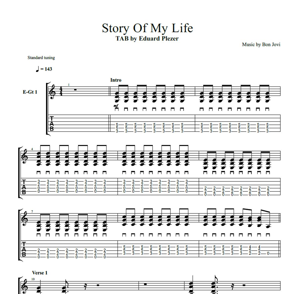 Guitar TAB - Bon Jovi - Story Of My Life