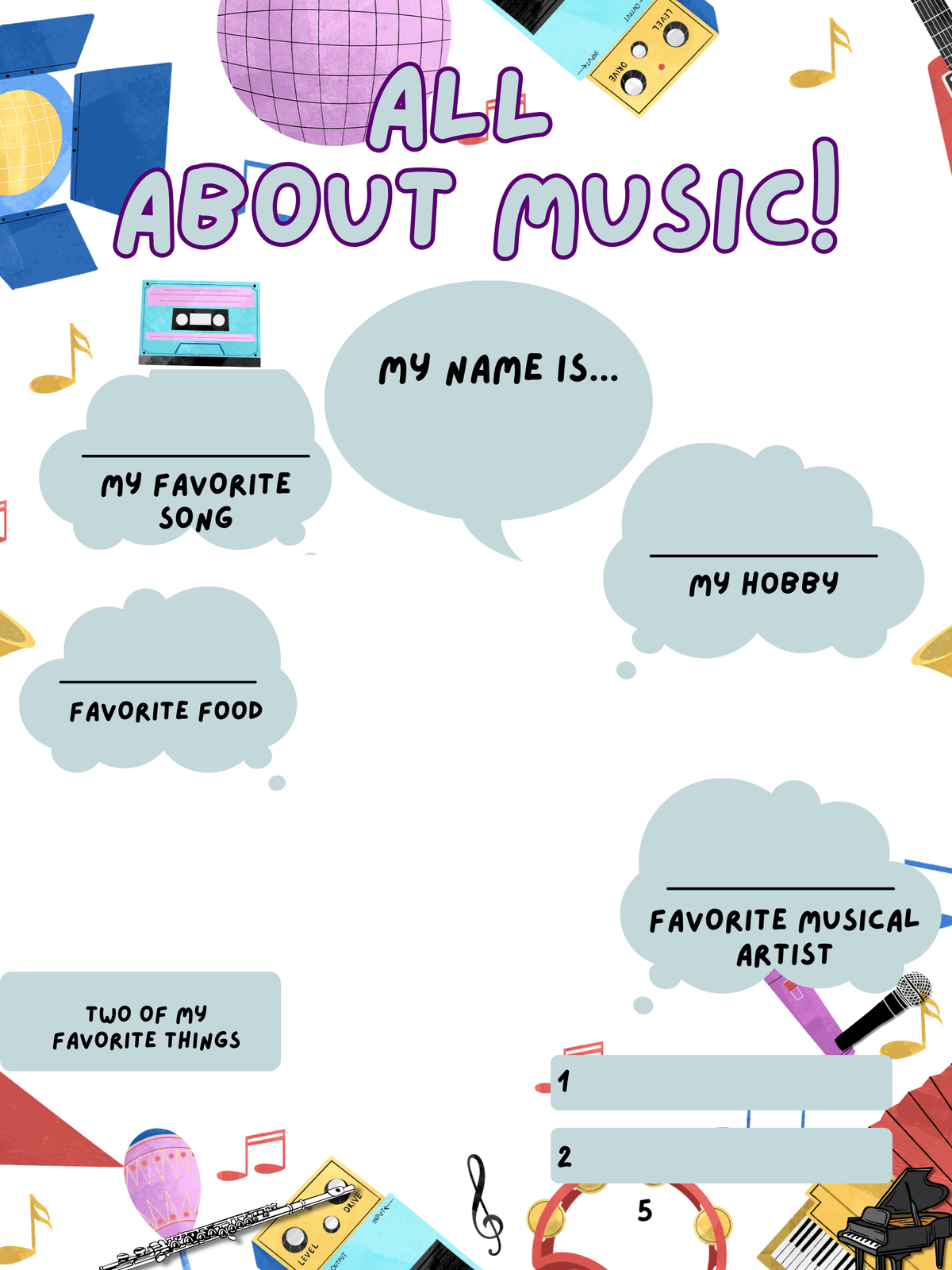 All About Music Lesson Plan and Templates for Grades PS-1 (ages 3-6) and Grades 2-4 (ages 7-10)