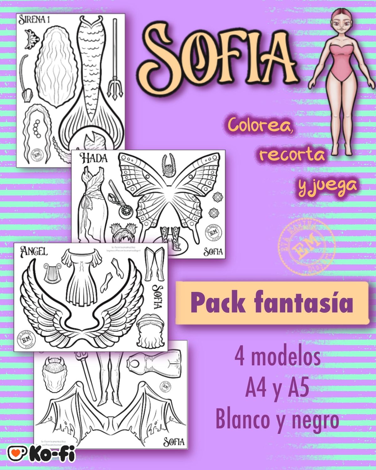 Pack fantasía. Muñeca papel Sofía.