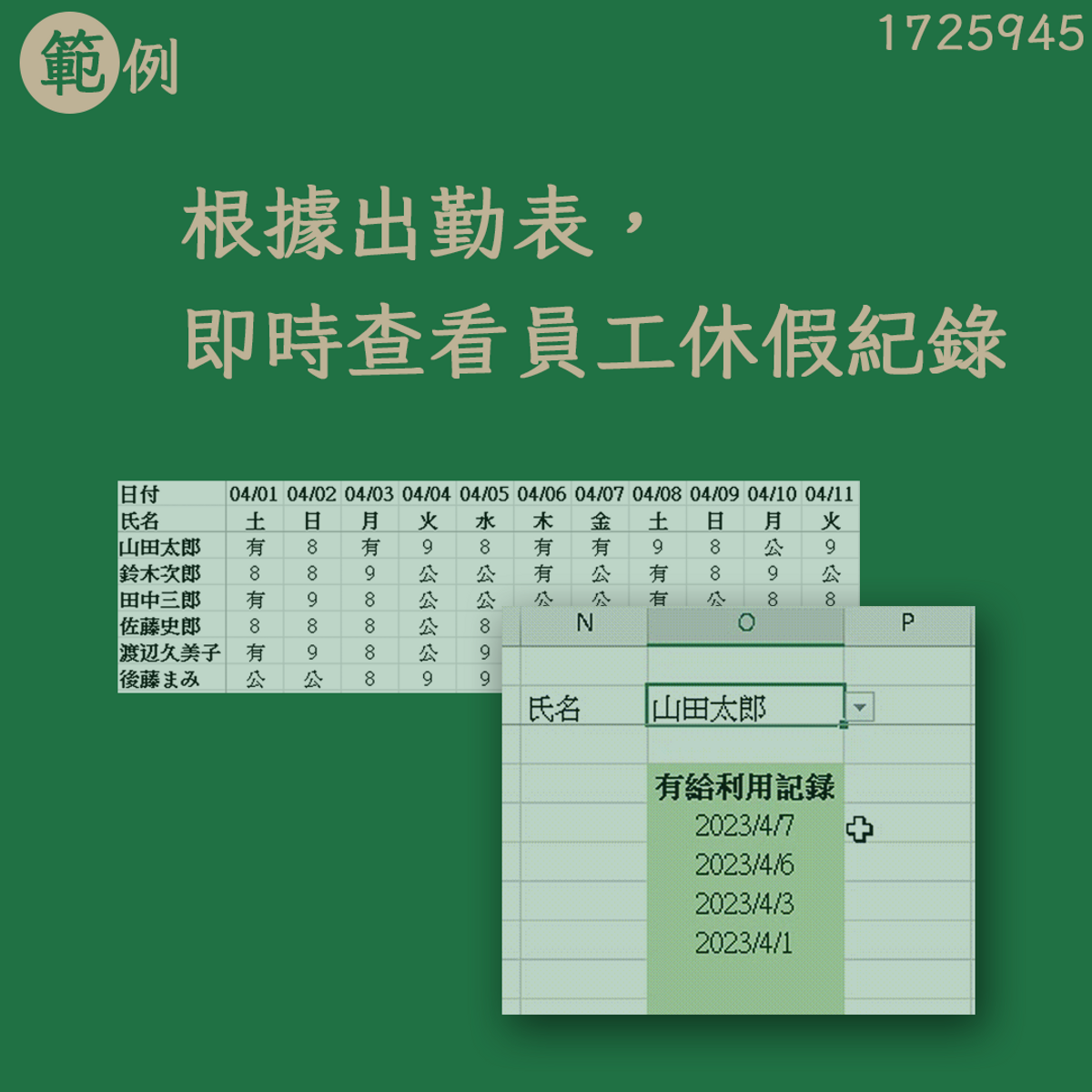 【範例】根據出勤表,即時查看員工休假紀錄