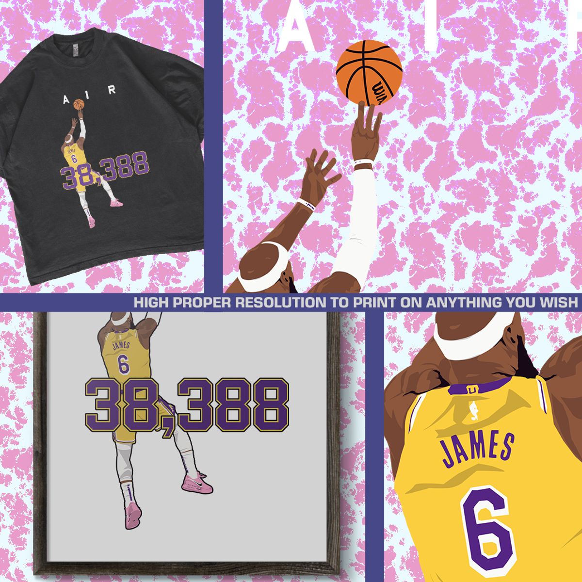 King James Vector Art, LeBron James 38,388 Design, PNG Digital Download, Basketball Legend Graphic, DTF Transfer