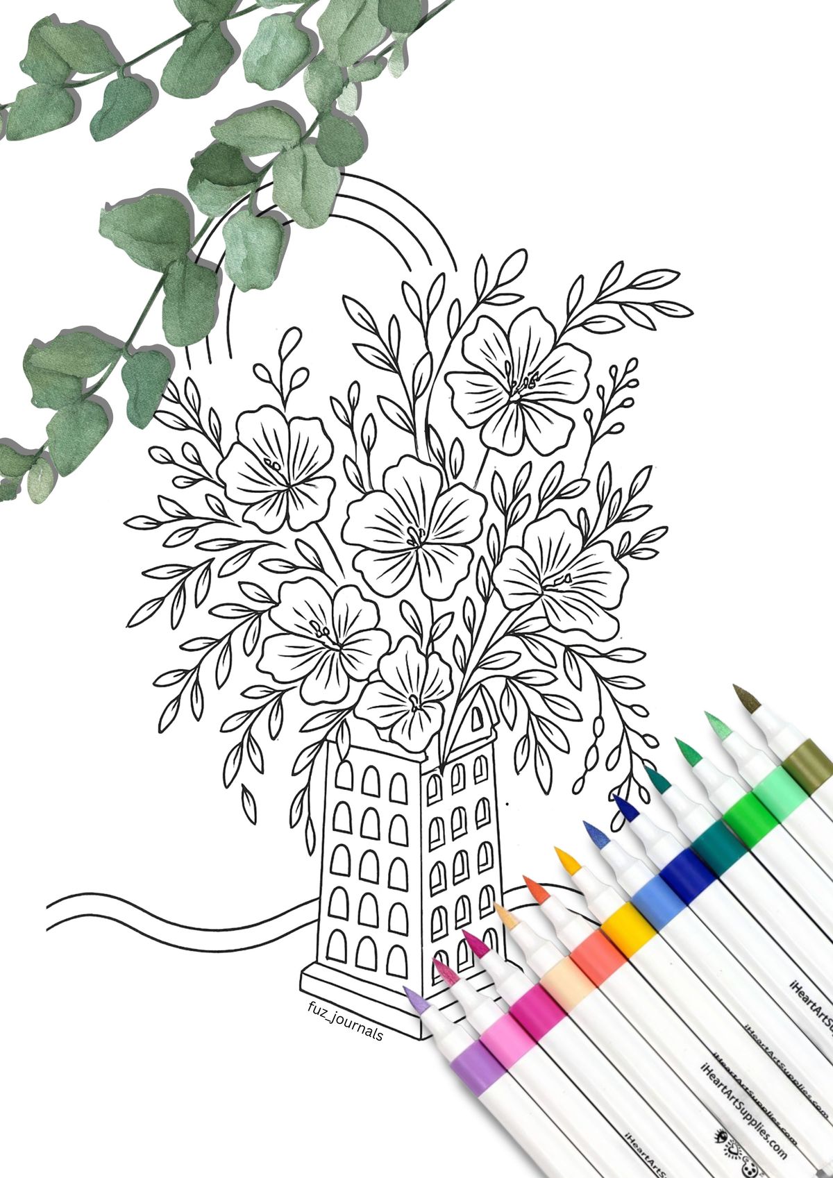 Floral Vase Coloring Page