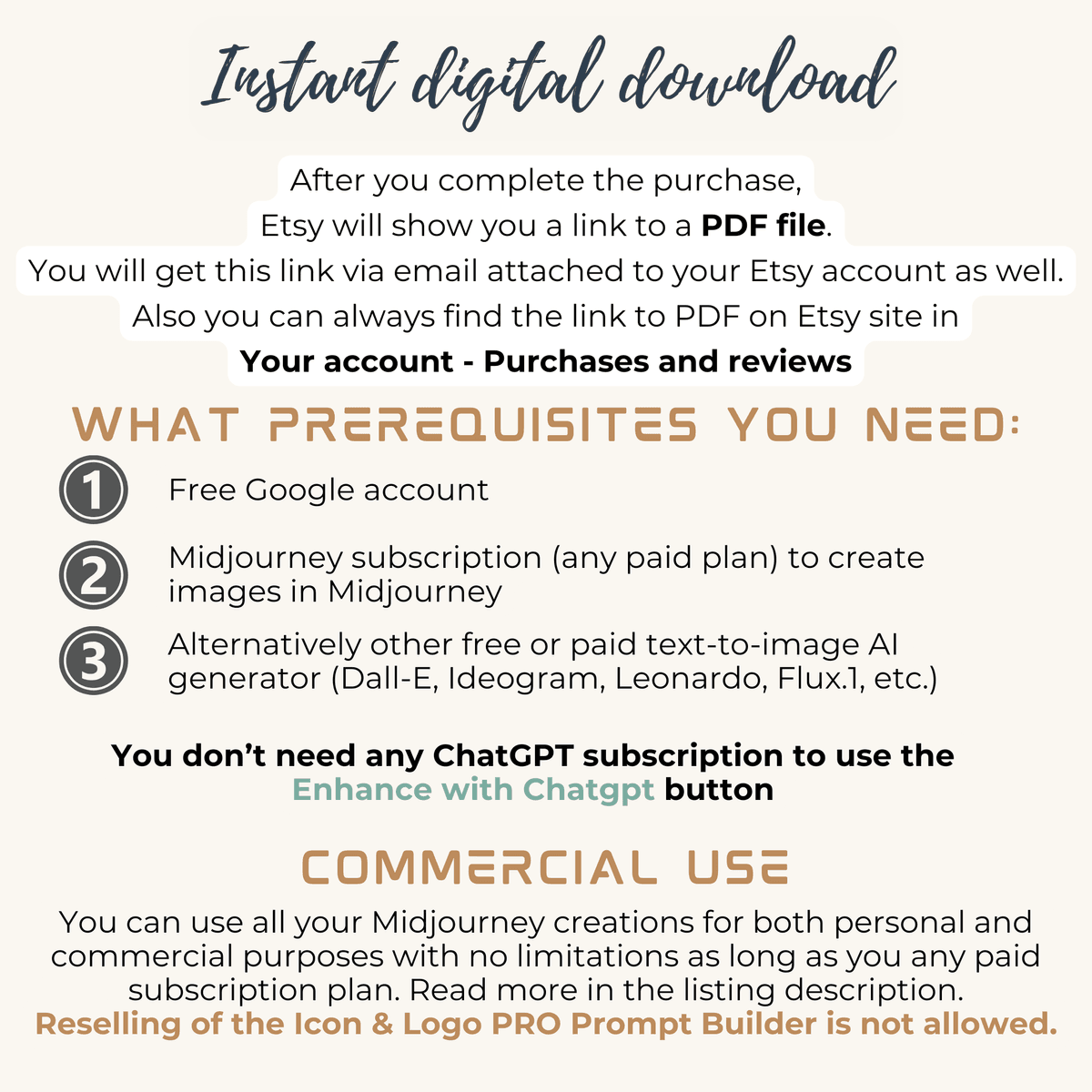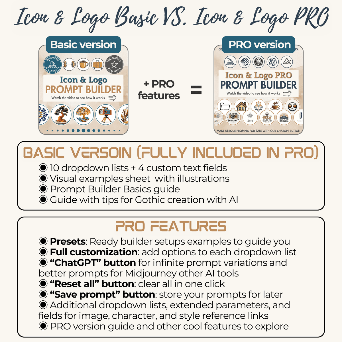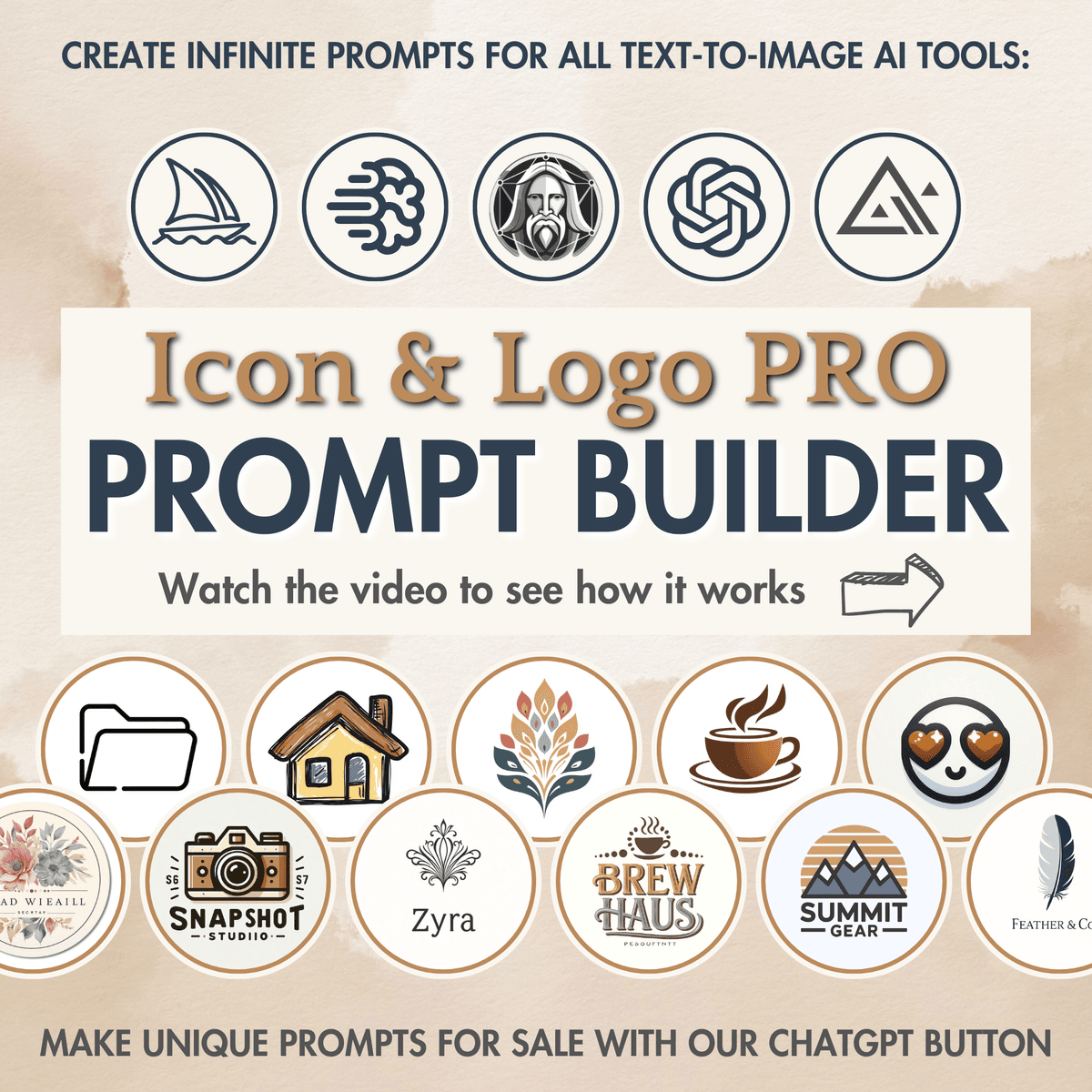 Icon and Logo PRO Prompt Builder for Midjourney AI, Dall-E (Bing), Ideogram, Flux, Leonrado and other text-to-image AI generators