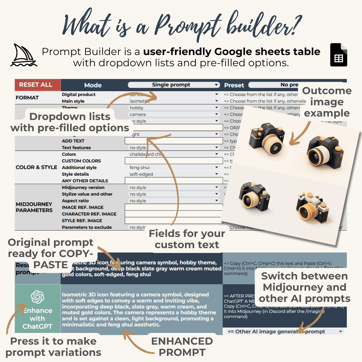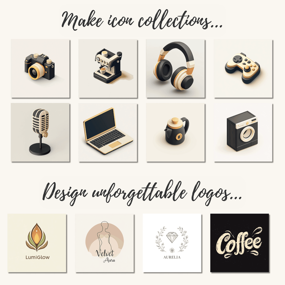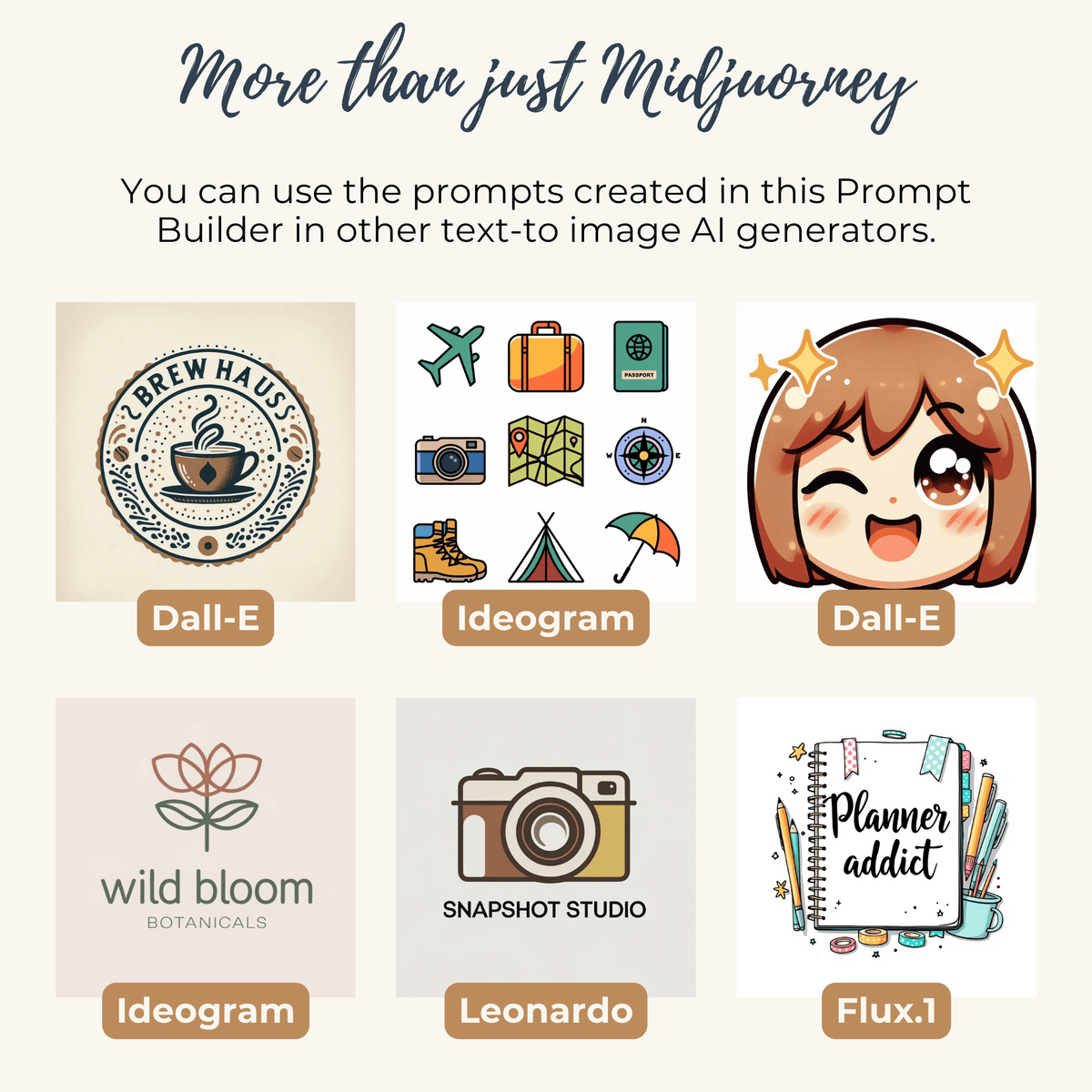 Icon and Logo PRO Prompt Builder for Midjourney AI, Dall-E (Bing), Ideogram, Flux, Leonrado and other text-to-image AI generators