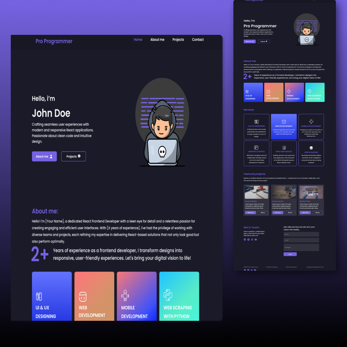 Responsive Portfolio Website in Dark Mode Source Code