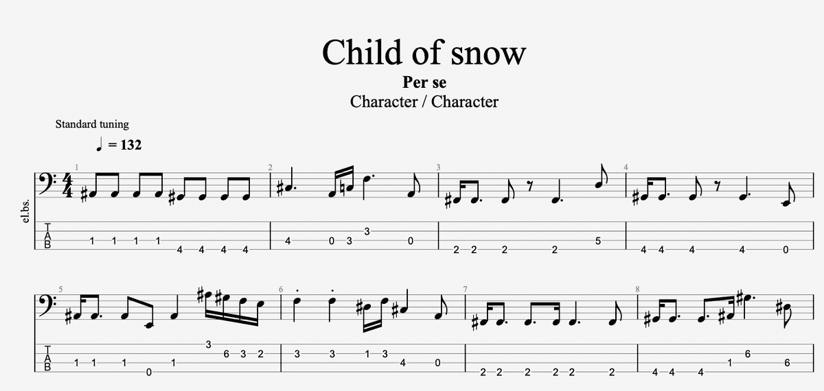 Child of snow - Per se (Bass TAB)