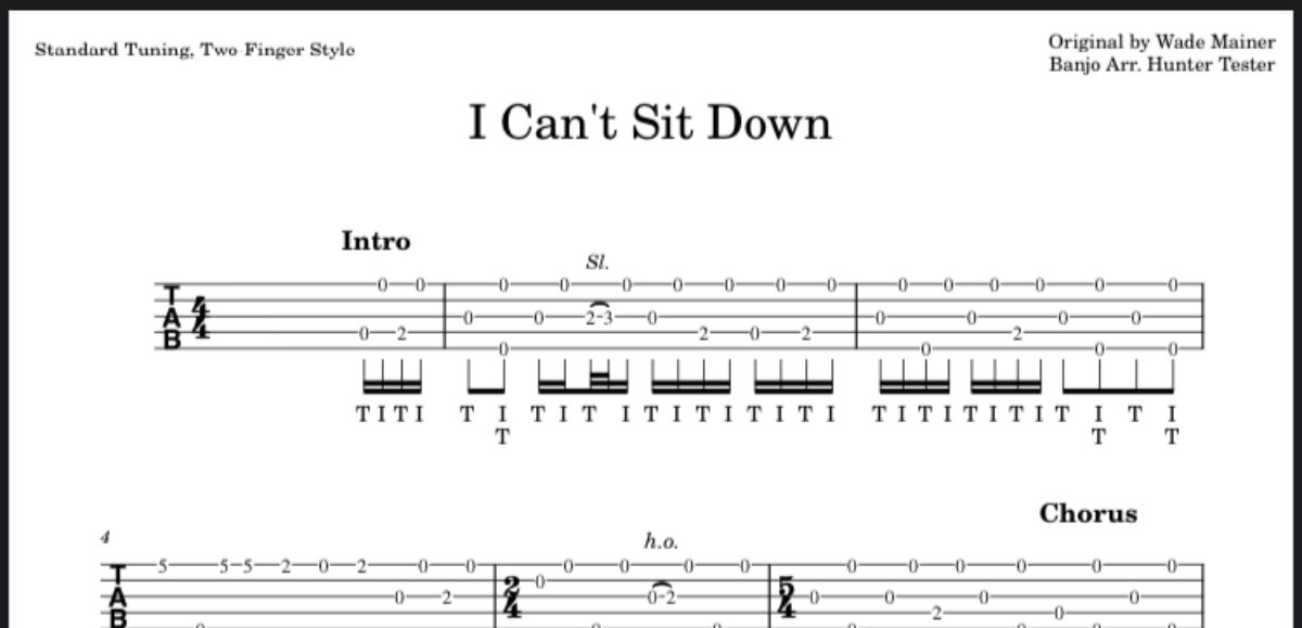 I Can't Sit Down by Wade Mainer - Banjo Tab (Two-Finger Style)